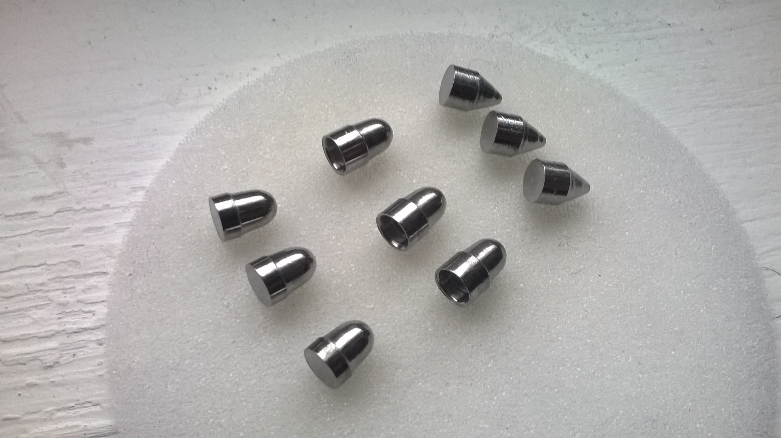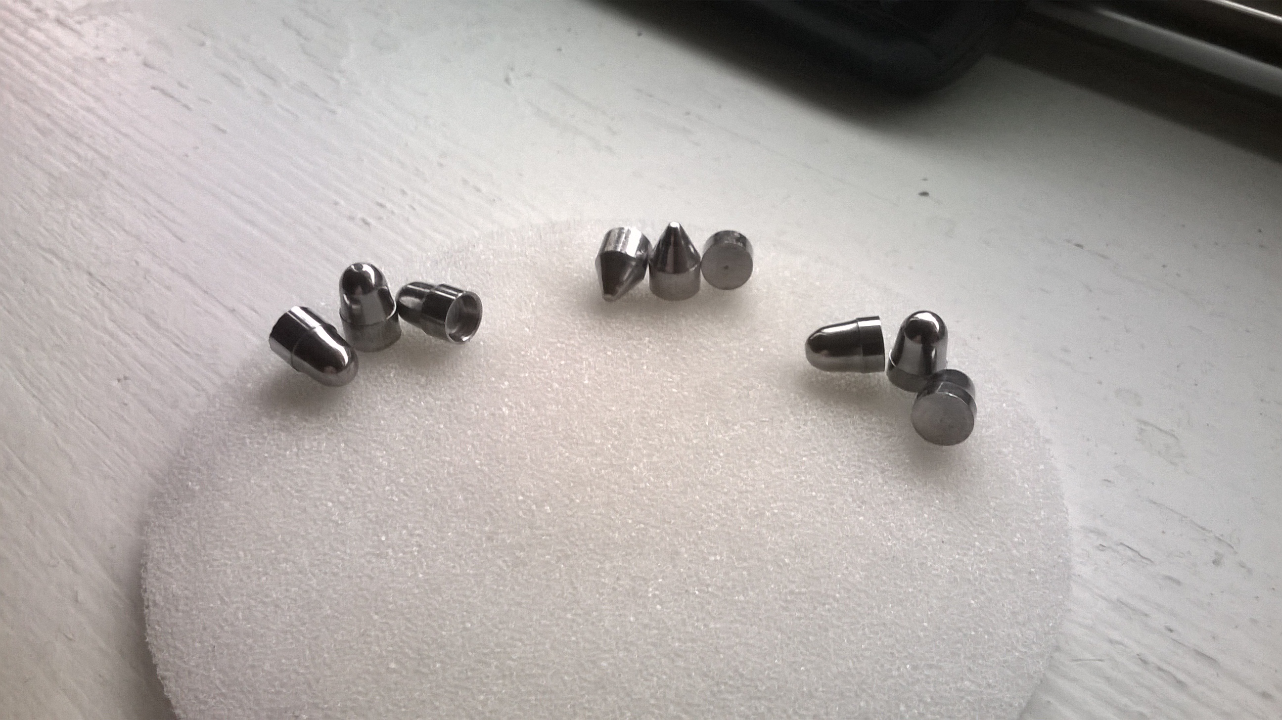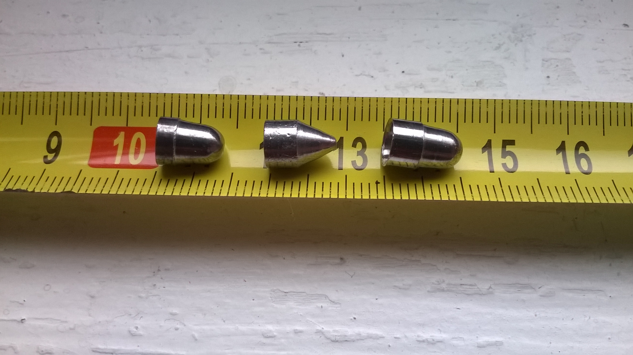 Точнее полетят те, у которых соотношение длины ведущей части к общей длине пилюли побольше. Либо надо ещё один поясок к передней части поближе добавить. Точно не полетят потому, что при постановки на нарезы пули, с короткой ведущей частью, могут становится не всегда точно соосно каналу, не будет чёткой повторяемости постановки на нарезы последующих пуль. Крутиться пуля в воздухе будет в продольной плоскости - вилять носом. Обрати внимания как сделаны корейские пули для больших калибров в ПСП.