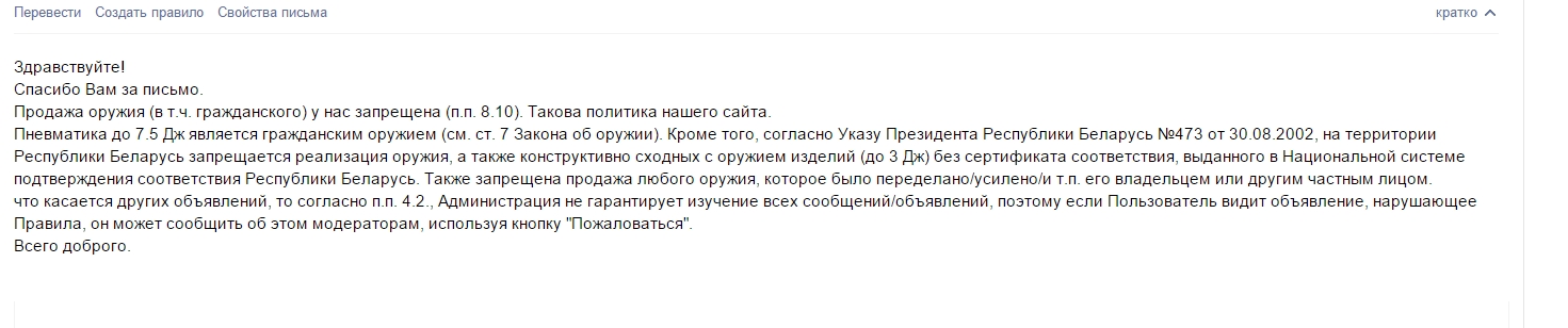 kevlarBY писал(а):дня 3 назад написал онлайнеру-сегодня получил ответ.