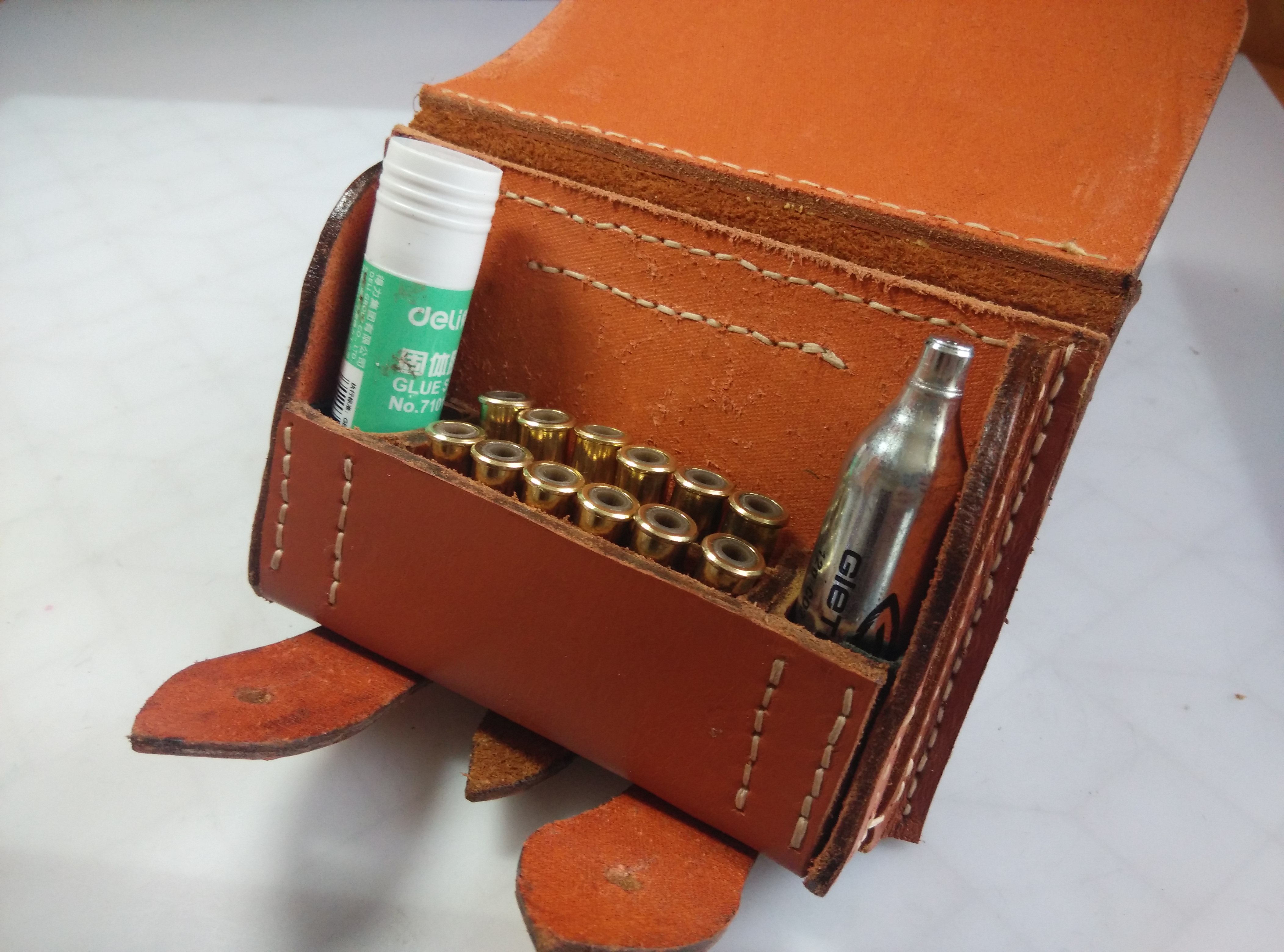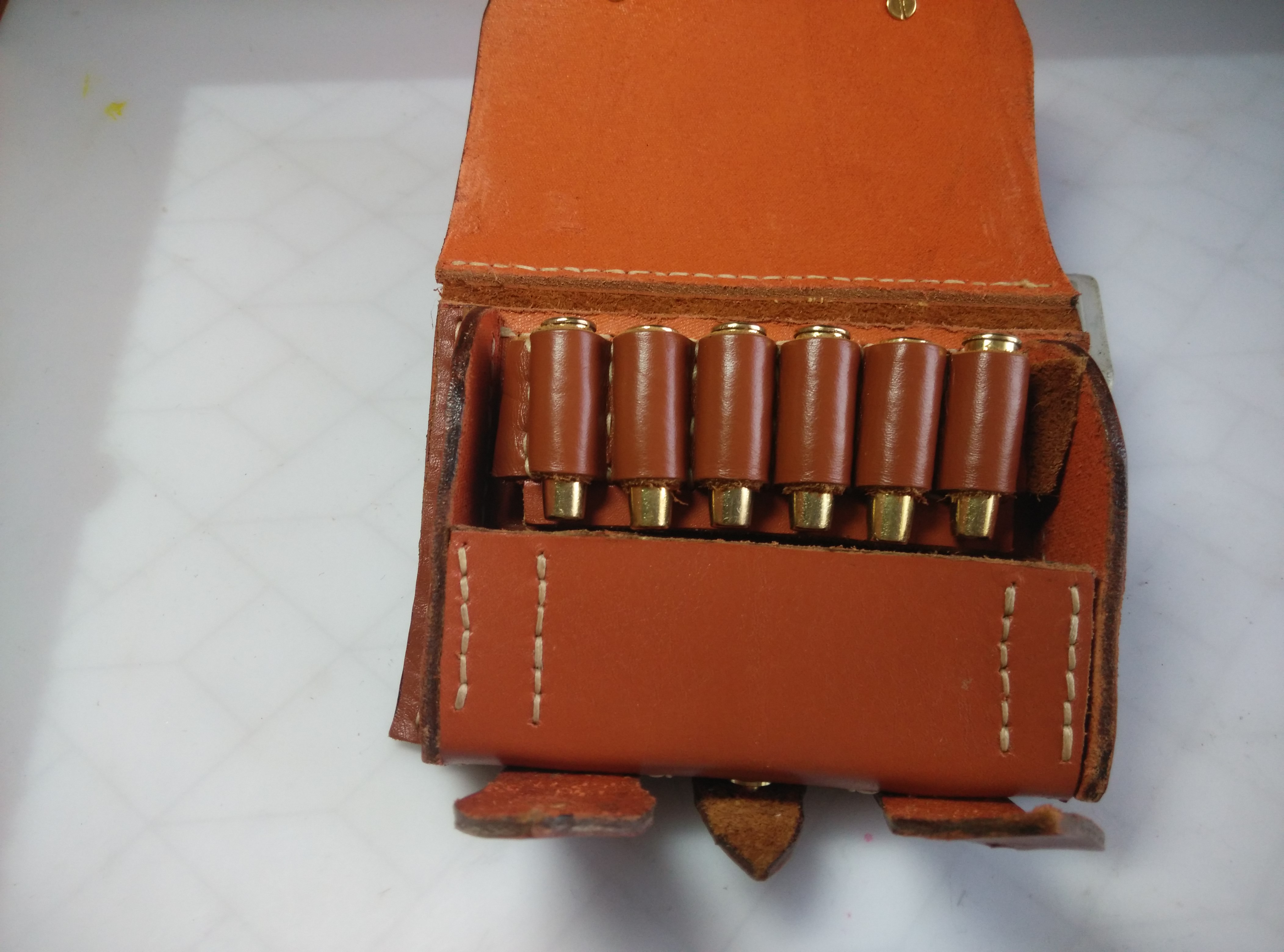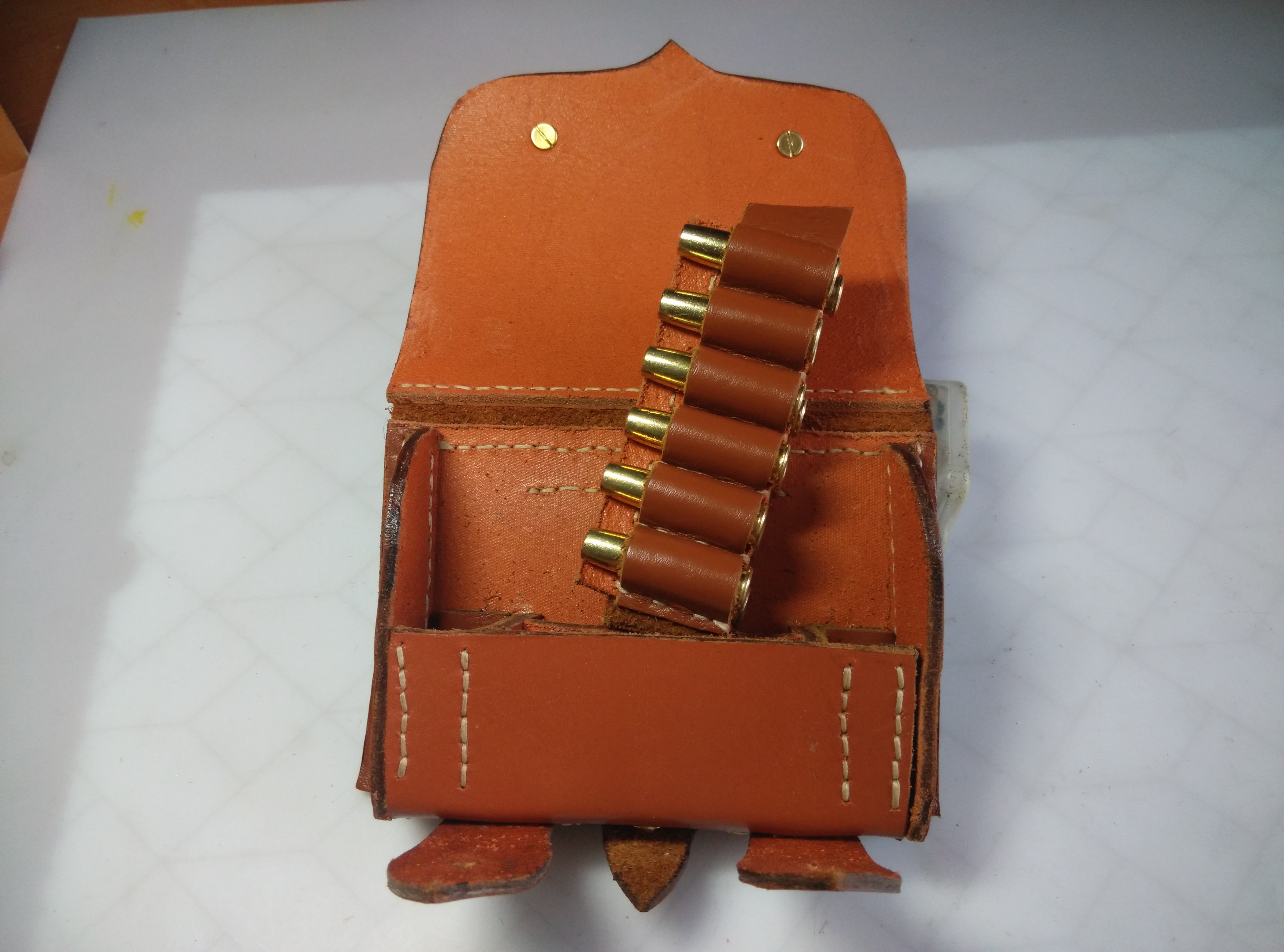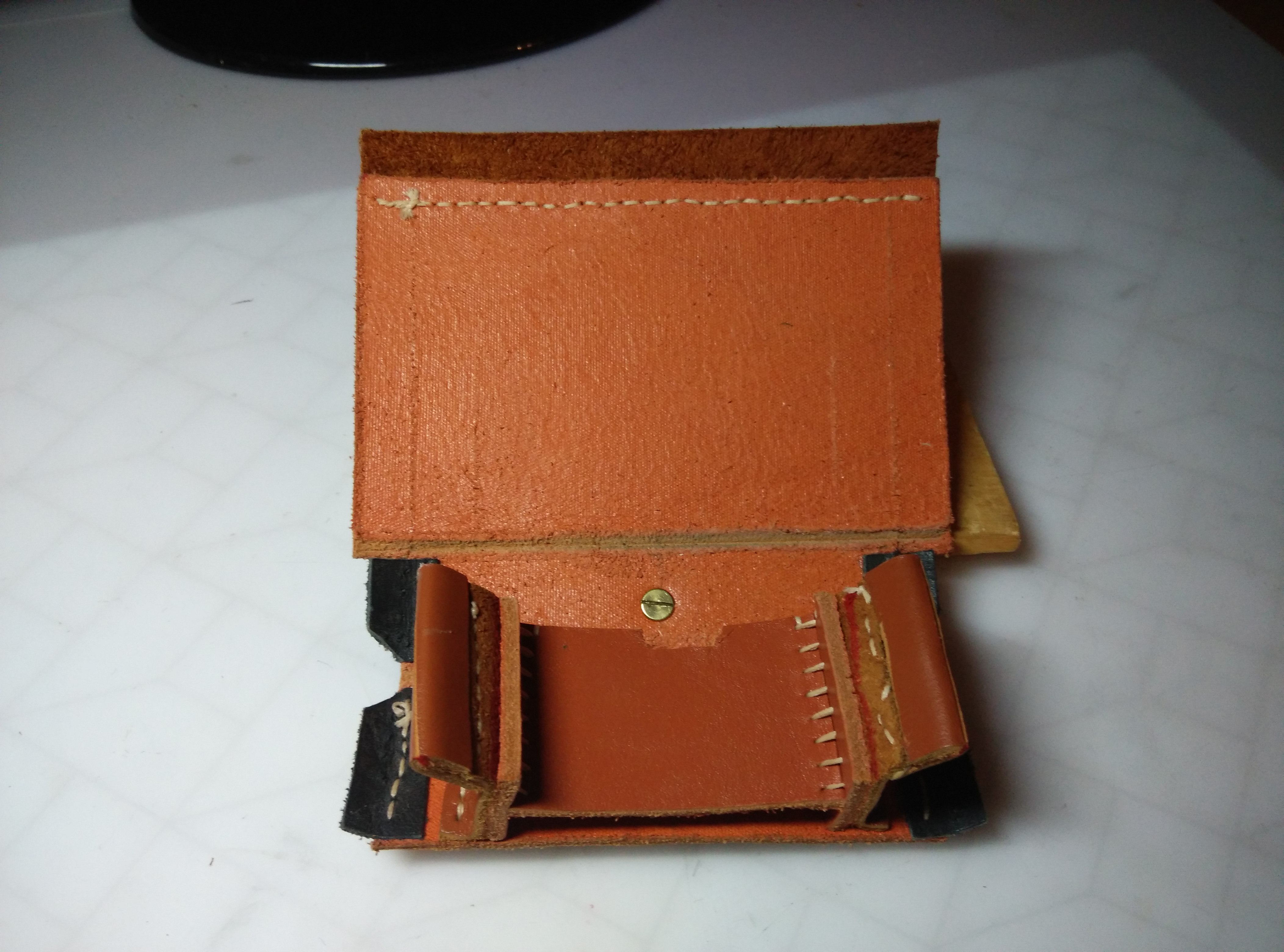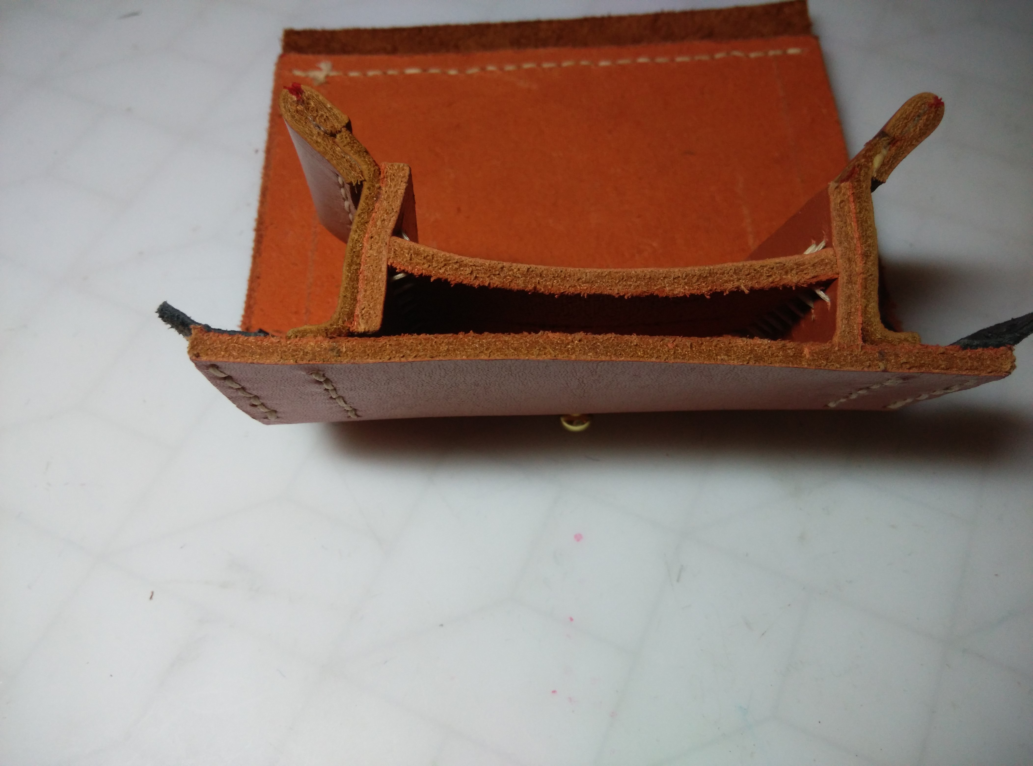 3. перегородка в патронташе так не сшивается! в торец кожа только под 45 градусов или со сгибом. можно было взять более тонкую для перегородки и согнуть с краёв, пришив насквозь в сгиб. |I___I| - вот так (схематично показал)