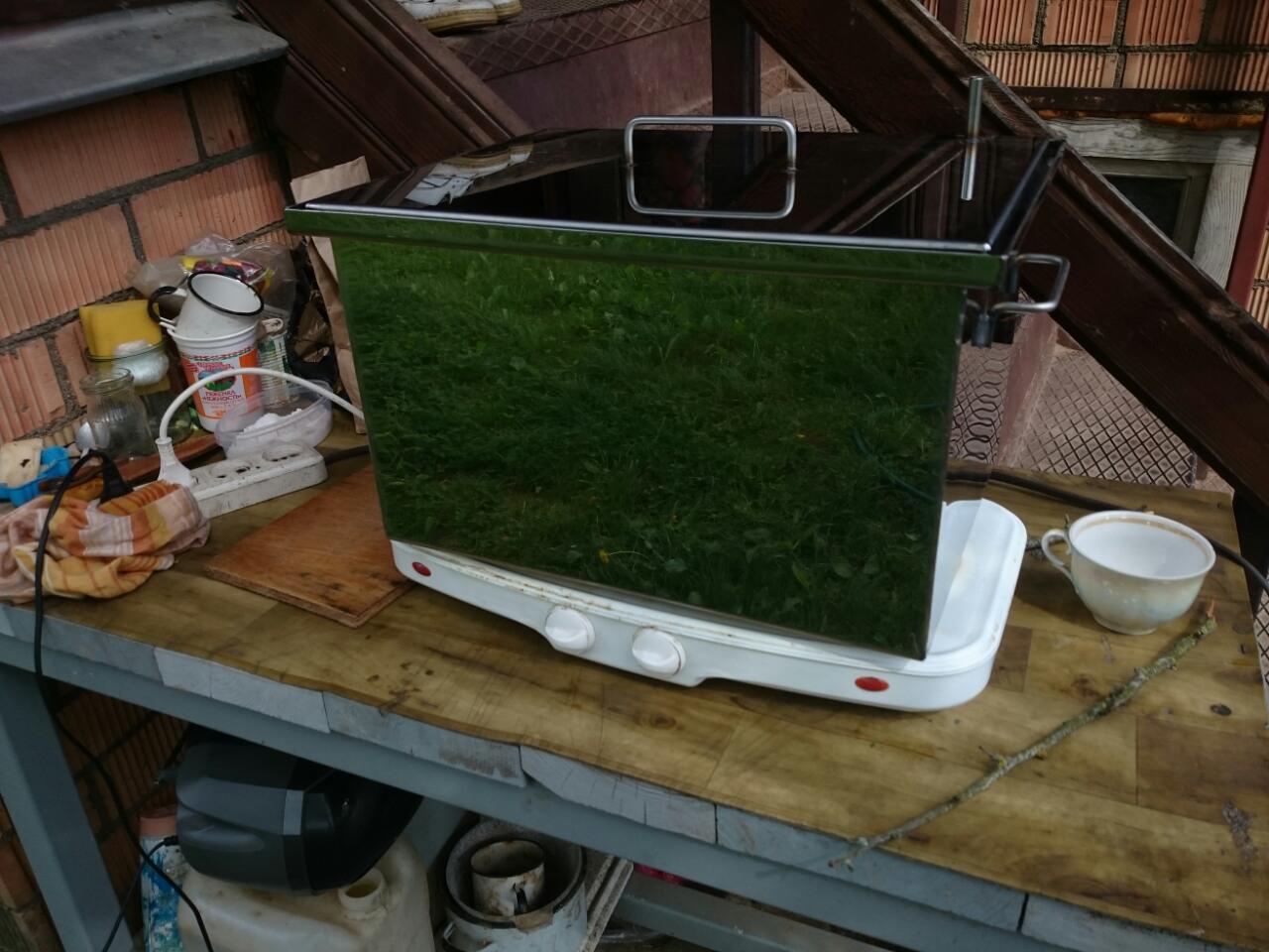Обзавёлся я наконец то коптилкой "взрослой" из нержавейки, с гидрозатвором и всеми делами.