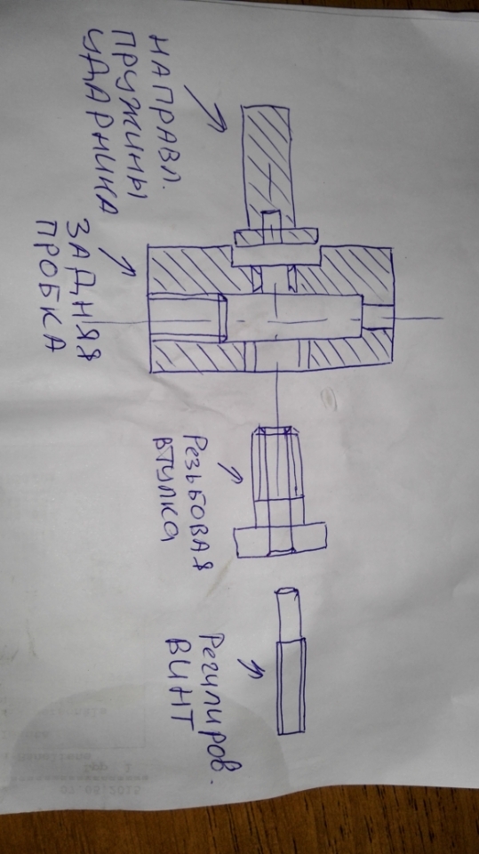 Боек в любое время могу вернуть в первозданный вид, поэтому про него не парюсь совсем. С колечками вопрос тоже решу, все это ерунда, правда дорогие они. Я тут набросал схему, как реализовать регулировку поджима пружины ударника. Минимум переделок-максимум результата.Кто, что скажет? :smu:sche_nie: