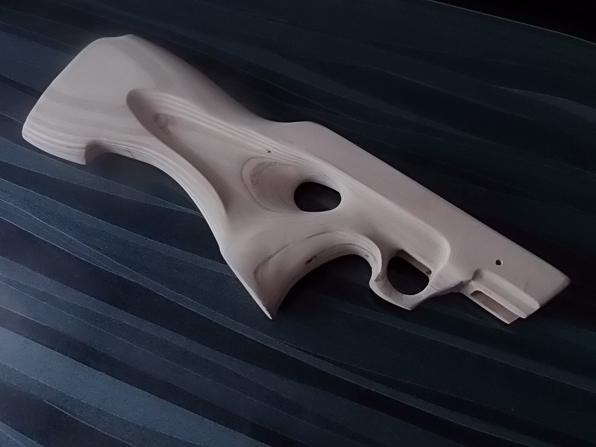 3)Доработал выборку под железо пистолета.Крепёжные отверстия совпали на 100%.Примерно так была выполнена рукоятка-удобно получилось весьма: