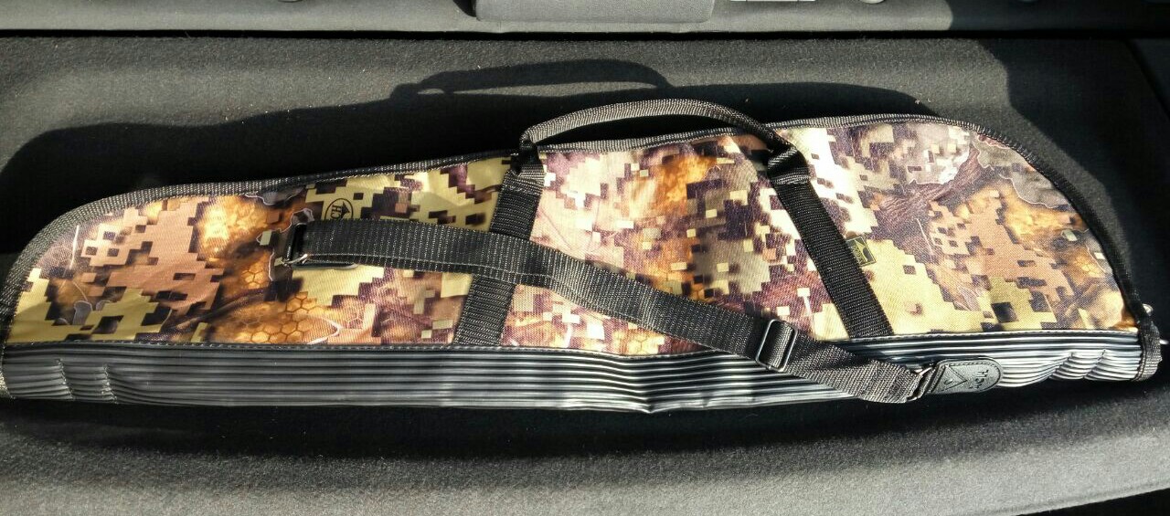 5)Требовалось сделать рукоять с пористым участком для надёжного хвата.По отработанной уже схеме воспользоваться решил автомобильным мелкозернистым антигравием.Загрунтовал участок необходимый грунтом-наполнителем(автомобильные маляры подсказали).Высохло,оклеил участок этот скотчем малярным,одел пакет на ложу(не один).Словом оставил только этот кусок не защищённым.Также в нижней части цевья с обоих сторон по 1 элементу.Покрыл в два слоя лёгких загрунтованные участки.