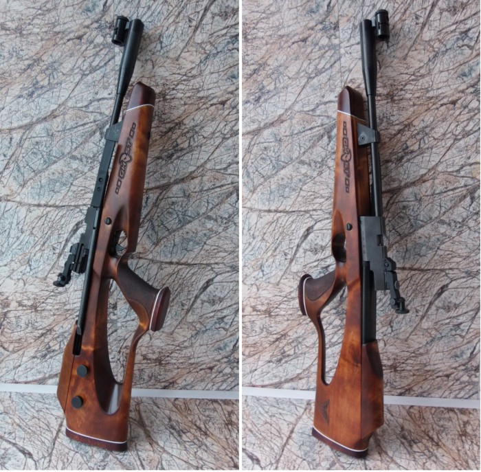 Был у меня шанс приобрести по приятной цене МР-553к. Загорелся я,но владелец сразу не продал его-сказал обождать немного. Чтобы время не терять,а получив этот «кислотник»-сразу «одеть» его в желаемую ложу,отложить решил всё начатое и приступить к этому проекту. В то время доделывал как раз свою «СВТ» на базе «Мурки». Но вот была проблемка-не на чем было примерять и т.д. выборку в ложе,не смог отыскать у кого-нибудь Ижика такого в качестве «лекала».Ладно остальное-это мелочи,а вот выборку нужно делать конечно точно. Да и с «СВТ» уже долго возился,оставались совсем мелочи и откладывать ещё на полгода совсем не хотелось.Решил обратиться к другу Митьке,парень он открытый к диалогу,после коротких объяснений ситуации и пожеланий,согласился Митяй мне помочь в моей проблемке.Договорились что основу он мне сделает,а весь отделочный процесс достанется мне.В итоге обещанное мне Димон выполнил и перевыполнил, прислал шикарный результат: Выборки все были,всё что нужно снималось,ставилось.Отверстия крепежа в боках точно просверлены,по длине-как по меркам делал мастер!!! Стал я тормошить продавца,мол давай,всё готово и еду забирать.На что мне был дан ответ: «Так я её уже продал…»!!! В общем «опрокинули» меня через «Х»,ложа так и оставалась мёртвым грузом на шкафу…Ну а с поросёнком тем я дел больше не имею, и иметь не хочу вовсе…