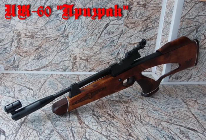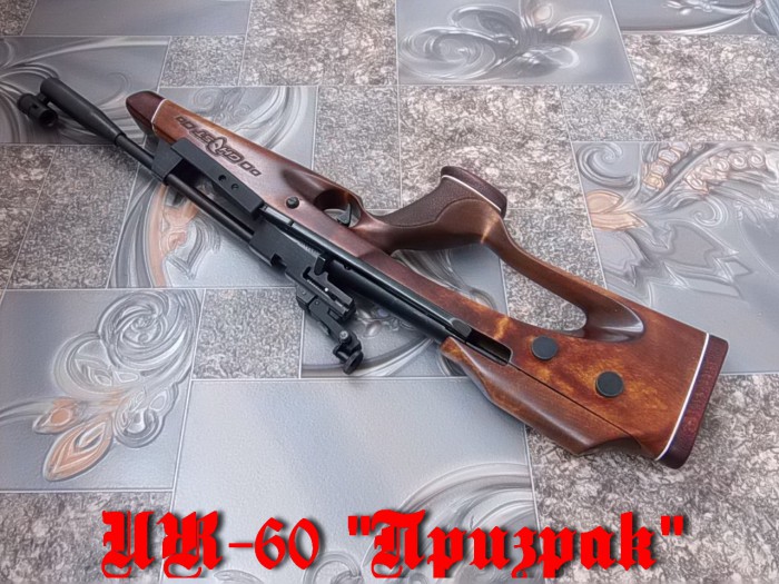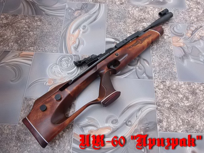 После решил дополнить декорирование ложи лазерной гравировкой. Рабочее название ложи было «Призрак»-уж простите,но люблю я давать своим изделиям какие-нибудь «погремухи».Именно такую «татуировку» решил я нанести в боках ложи.Служила она не только в плане декора,но и была полезна в хвате за цевьё.Также как и на наколотке рука по этим логотипам не скользила.Получилось собственно так: На память товарищу нанёс на левой стороне приклада свой логотипчик: Ну а в сборе с этими элементами вот таким стал ИЖик: Снова разобрал винтовку,выкрутил из ложи и втулочки под маховики.Начал окончательную зачистку ложи перед пропиткой.Наждачка была разной.От средней до самой мелкой нулёвки.Деревяха была казалось бы как стекло. Но ворс конечно был скрыт.Чтобы его убрать-пошёл уже привычным путём. Мочил мягкую тряпочку чистую в кипятке,отжимал её как можно лучше и натирал этой тряпочкой ложу.После подсыхания влаги на древесине стал подниматься тот самый ворс!Снова наждачку в руки-теперь от 600 до 1500 заново зачистил ложу.Потом ещё раз повторил привычную процедуру тряпочка+кипяток. После подсыхания(а сохнет быстро потому что не мокрая тряпка,а именно ВЛАЖНАЯ!) снова зачистил ложу от 800 до 1500 нулёвки.И ещё раз проверил тряпкой влажной ворс(уже третий)-вот теперь ворса не было вообще!Напоследок прошёлся наждачкой строго по волокнам по всем поверхностям ложи наждачкой 1500-2000-2200. «Буратинка» была готова к морению и пропитке на все 100%.