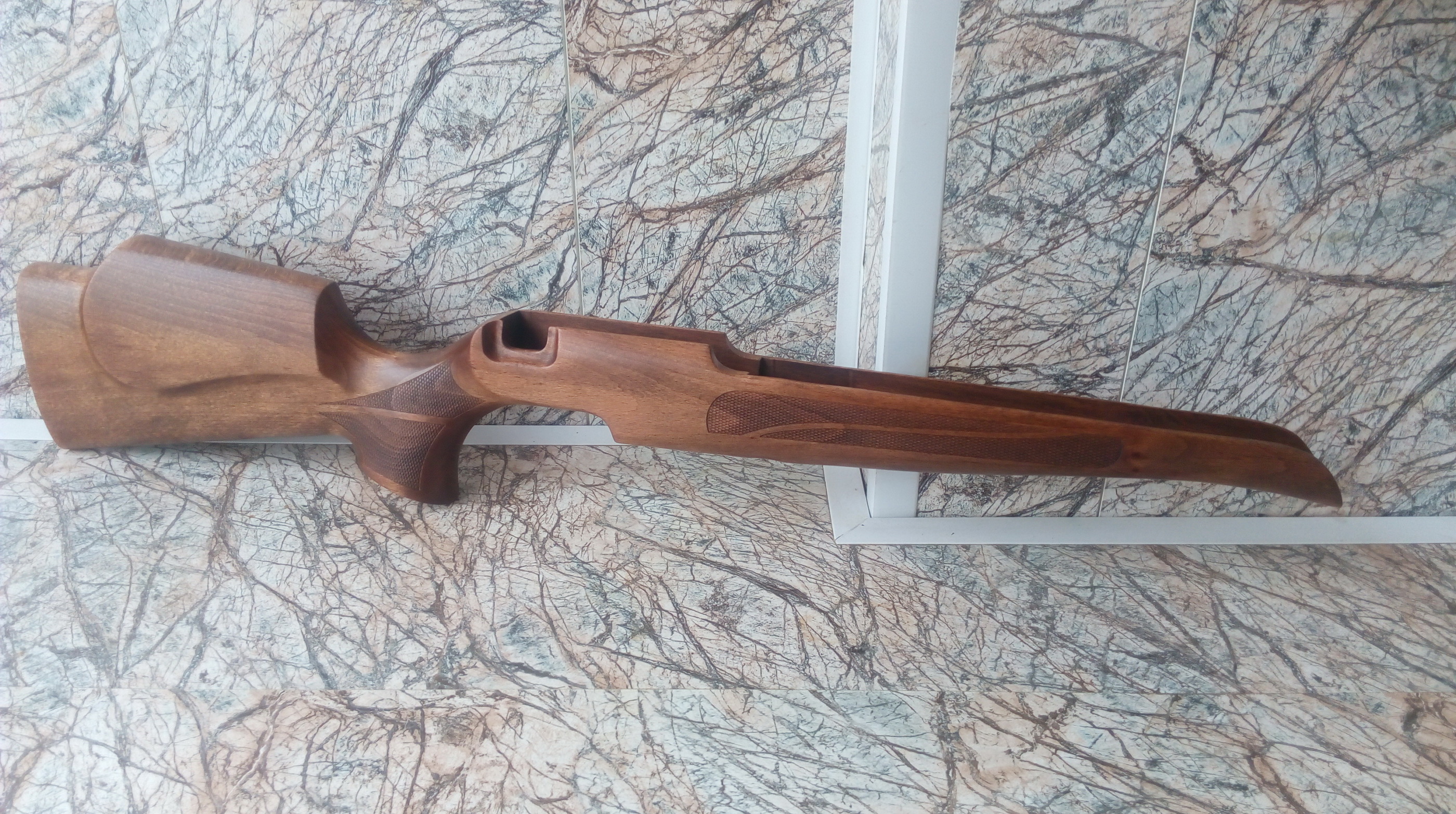 Ну а попутно с той работой выполнял потихоньку и эту. В общем была просьба от форумчанина помочь ему с пропиткой ложи винтовки советом. Купил он новенький "Крал". Цвет ложи был очень светлым и покрыта она была лаком. Хотел он сделать её более практичной-пропитанной маслами. В чём я с ним совершенно согласен! Лакированная ложа и пропитанная-это две абсолютно разные вещи. Вмятинку на ложе если она пропитана можно удалить за пару минут не испортив покрытие. Я имею в виду с помощью влажной салфетки и утюга. А вот на лакированной ложе гарантированно останется пятно и не слабо заметное! На пропитанной достаточно будет обработать легонько маслом место ремонта и она :co_ol: