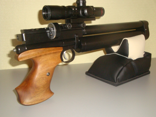 Продается изделие на базе КИТа Крюгера. КИТ – январь 2014 года. Резервуар 29см. Новая коробка. Ствол калибра 4.5мм., от AR2079, длина – 25см. Установлен редуктор, без сверления резервуара (снято уплотнение задней пробки, дышит по резьбе). Всегда можно демонтировать и стрелять в прямотоке. В прямотоке имеет около 30 выстрелов со 120 до 90 атм. За счет установки редуктора, количество выстрелов с 260, до 100 атм., увеличилось до 100, при скорости на 220 м/с., Поджимом пружины, можно разгонять гораздо быстрее, но есть ли смысл?
