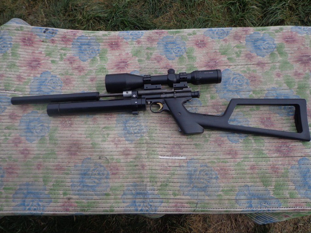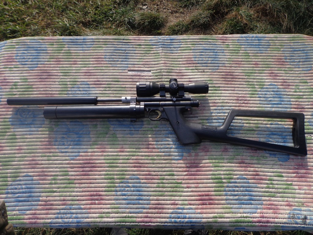 Итак, крыс был приобретен тут на форуме в довольно невеселом, как оказалось, состоянии, стрелял криво и мало. Было что-то вроде рабочего давления от 160 до 100б и д10 мыс хевиком. Такое положение дел не устраивало и крыс был отдан на доводку. Брестским мастером бы установлен редуктор(130б) и приведены в порядок внутренности крыса. После апа можно получить с 300-130б 65шутов(+10 на прямотоке) д35 хевиком или д45 1.03. Сейчас настроен на 3.5Дж. По точности прилагаю картинку, считаю что для данной ценовой категории показатель очень даже ничего. Также был куплен костыль, т.к. в пистолетном вид было тяжело( старые накладки в комплекте). Прицела на выбор 2, липерс 6-32 с милдотом и подсветкой или беларовский ПО 2.5-10х48 (с легкими косячками). Цена вопроса - 480 с одним прицелом, 500 с двумя.