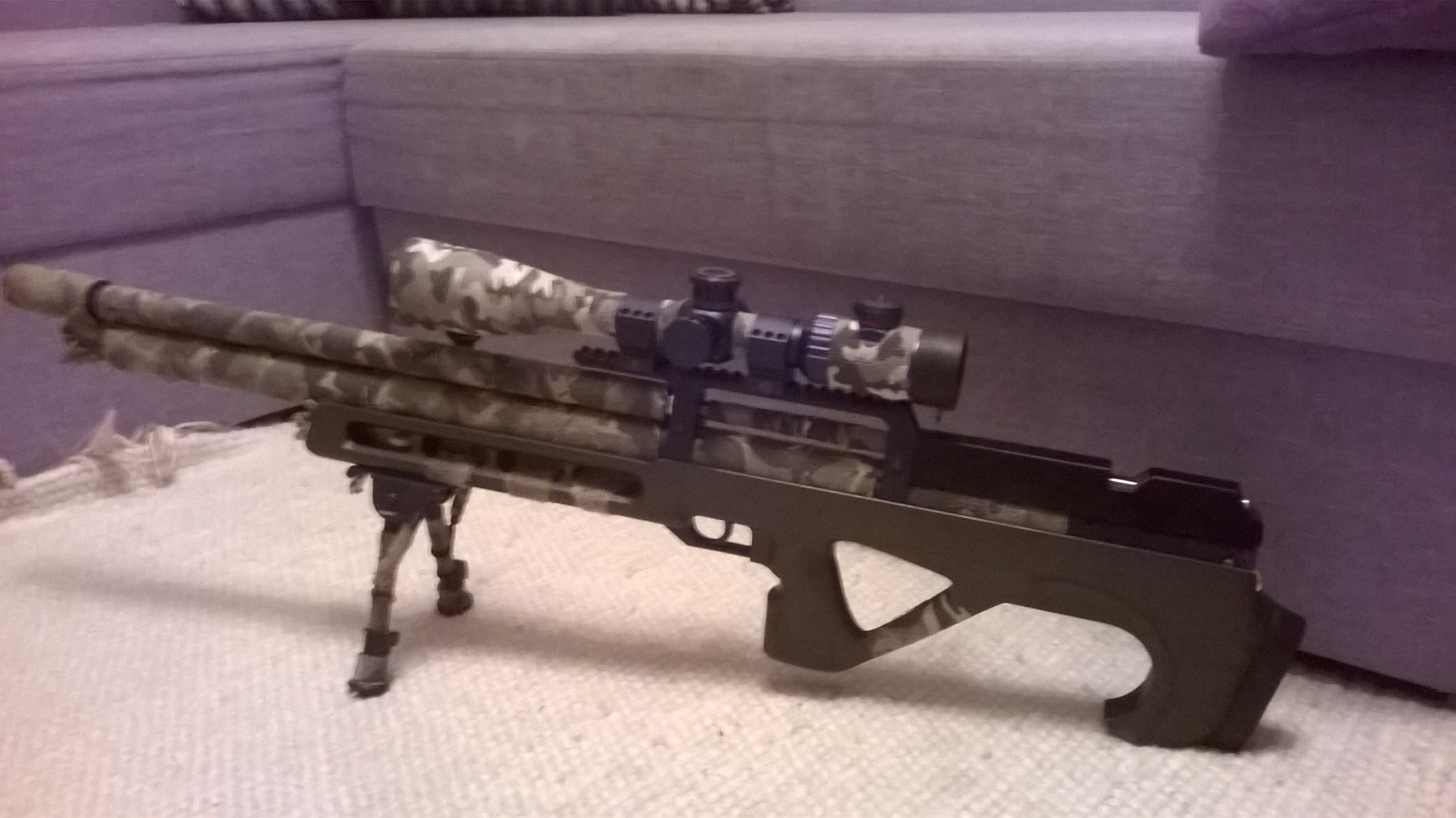 К сожалению решил продать. Причина. Хочу седины, перерос . Про кучи, настройки . Там всё отлично ,как и на дальняк так и у ног,подвиги описывать не буду , редуктор 115 -120 бар. При 29,5м.с есть около 70 запусков в 2 метровом коридоре с 200 до 115 бар ( дальше плавное падение - 1 м. ) Железо без царапин. дерево то же ,но лёгкие потёртости по нём естественно есть (низ пистолетной рукоятки ) к примеру. Дальше всё стандартно ,чехол бумажки, заправочный шт...р. сошки (выдвижные),андапка под ремень, доп модер (+р.к.),накладка под щёку, моток новой защитной ленты. Лента, которой сейчас обмотан ,,ЭД,, легко снимется без остатка. JSB 2,5 банки (1,175) +остатки стратон ( 1,645) штук 40. Прицел с гравированной сеткой на линзе 10-40-56.кольца низкие. Разбивка комплекта возможна после продажи винтовки. Цена за всё 19 000000 бел р. на этот день. Голый стоит 1,1 тону ...знаков. Расчёт в уе не обязателен НО ПРИВЕТСТВУЕТСЯ. Доставка до 300 км от Гродно за мной.