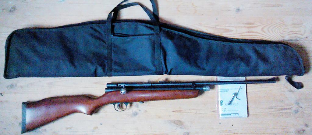 Без оптики. Установлены родные открытые мушка с целиком. В комплекте чехол-сумка, паспорт, шестигранник и родная ручка затвора.