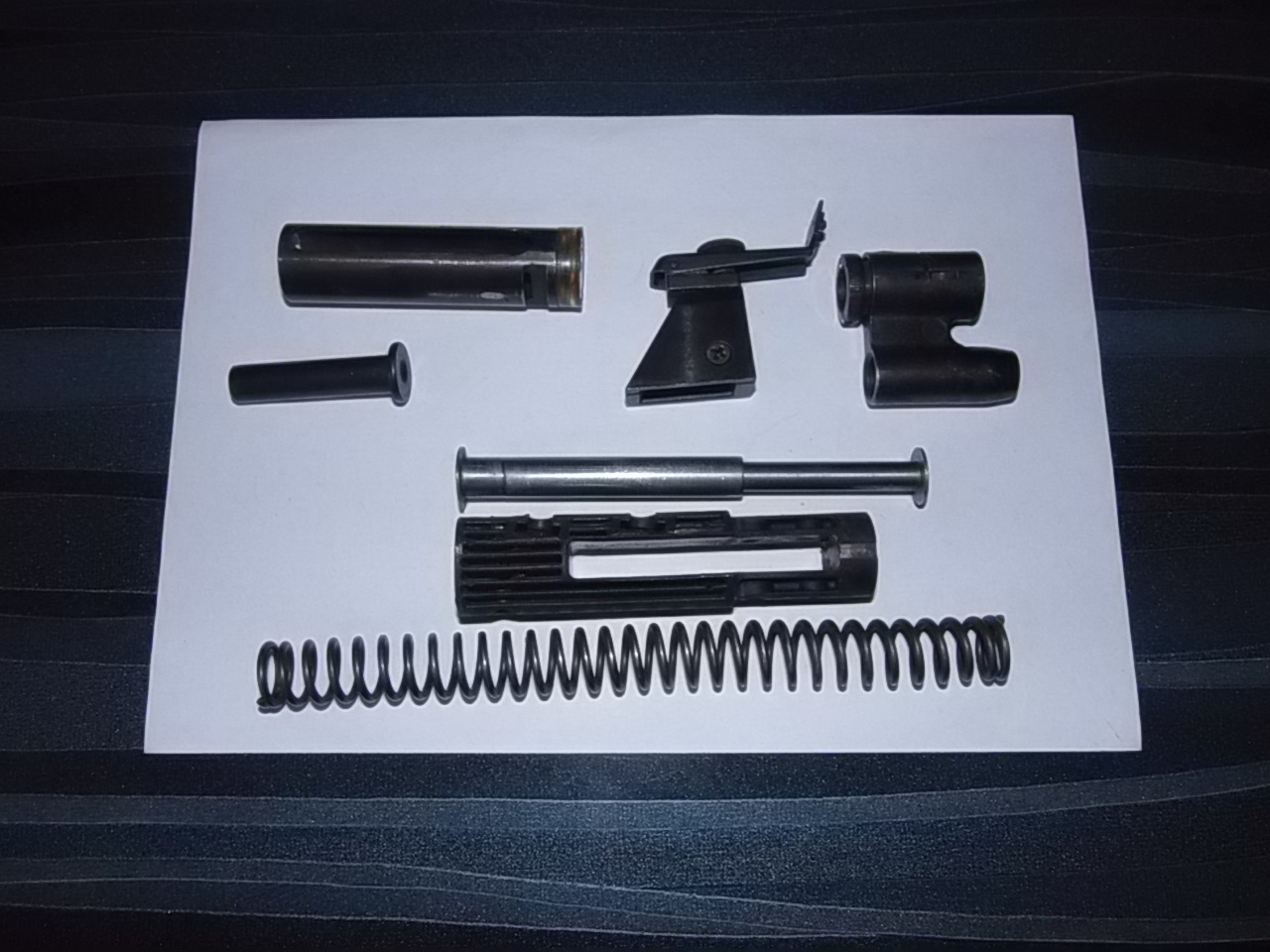 Перечислю еще разок: поршень с манжетой, направляющая, прицельные с пирамидкой, пружина :-):