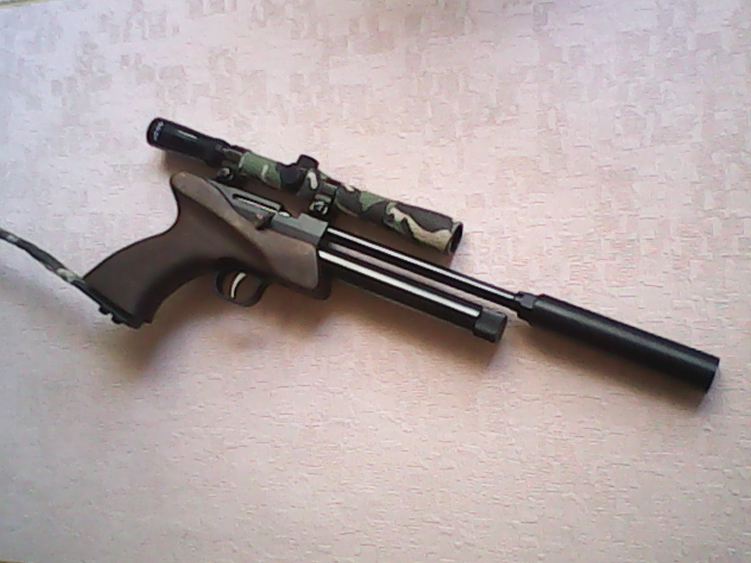 Продам пневматический пистолет Кандар сп1 калибра 4.5мм.Проведены следующие работы переделана рукоять(из стоковой) а именно убран "подпятник" пропитано морилкой и обработана восковым составом,установлен модер(от этгана, стоковый) глушит не в ноль но вполне,придуман и установлен костыль(стальная полоса,завороненная,крепиться двумя винтами м5 на установленную на рукояти деталь - просто и надежно.Поставлен карандаш 4х20.Ну и прочее рукоблудие ( расверлен перепуск,отполирована фаска н стволе).Куча нормальная - оптимально ЖСБ EXACT 0.547гр.Цена за комплект - 130 обамов.По отдельности пока нет.Стоковый комплет(целик и надульник с мушкой) тоже отдам с пестом.Причина продажи - мне нужен именно пистолет(достаточно мощный и компактный) а кандар с модером и костылем - что угодно но не пест :ne_vi_del: Тел для связи +375295596721(мтс).