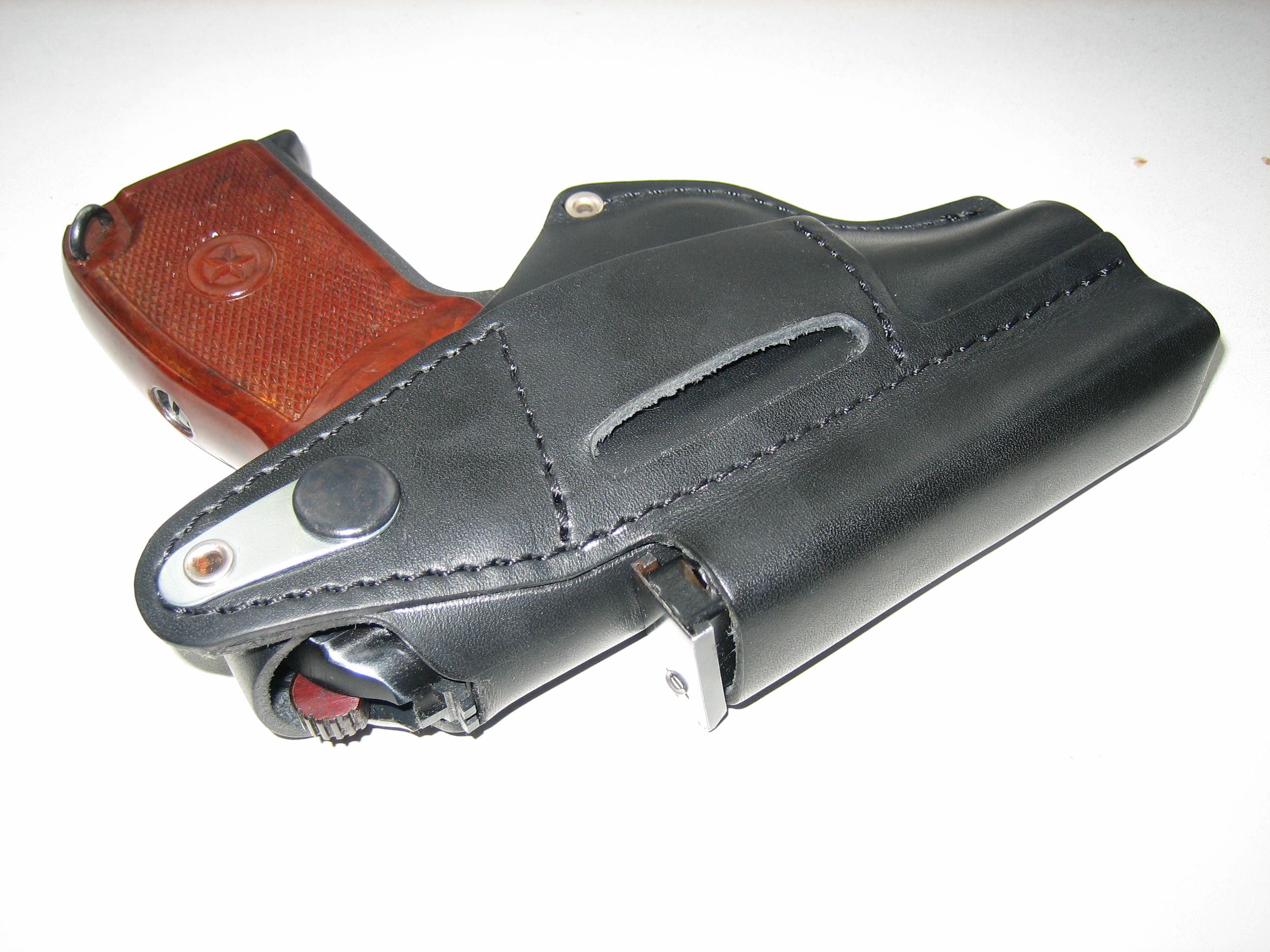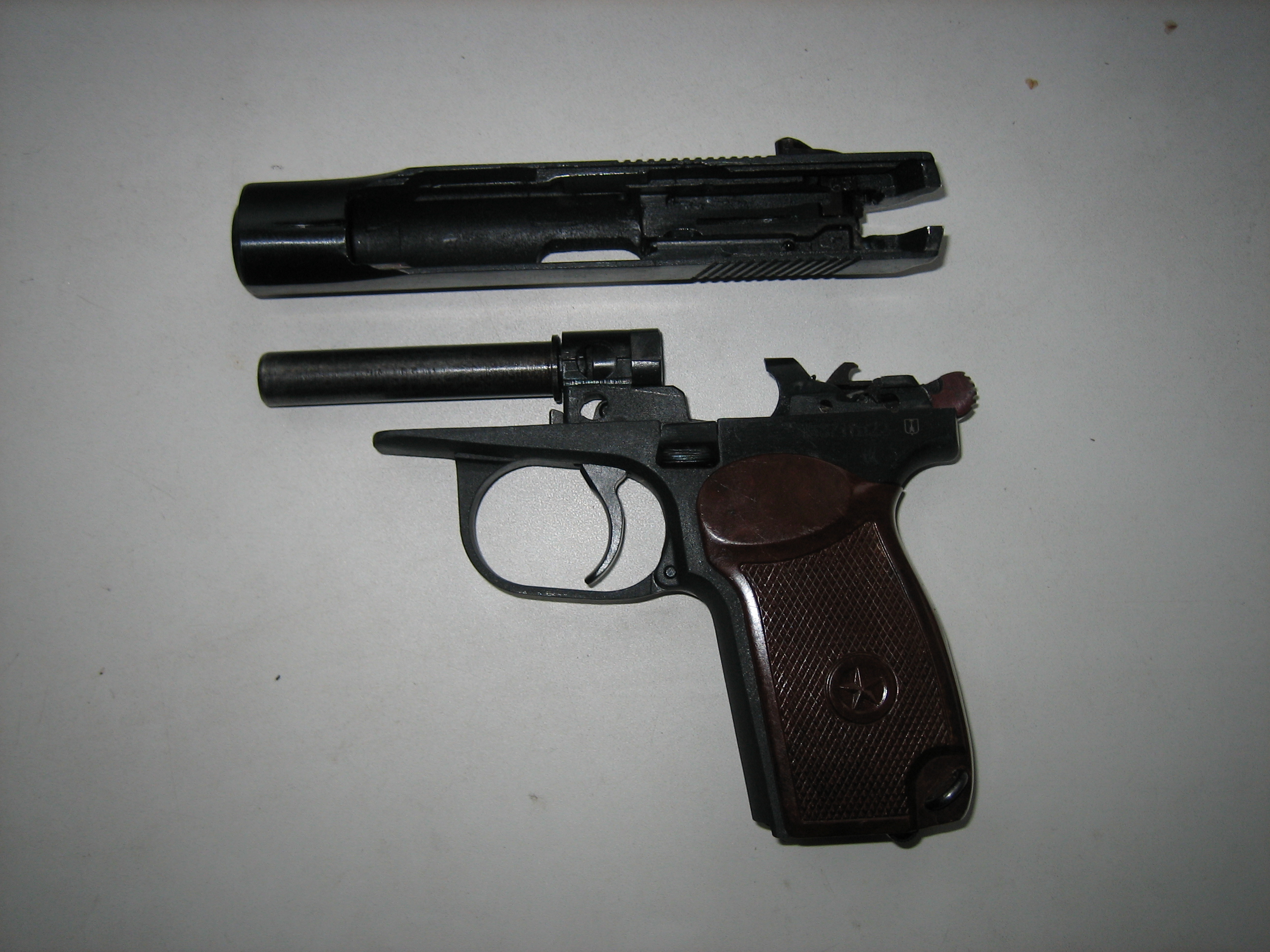 Забыл добавить одну мелочь: короткий поджимной винт рукоятки, которыми стали комплектовать новые модели Ижиков, заменён на удлинённый для ПМ под штатную протирку