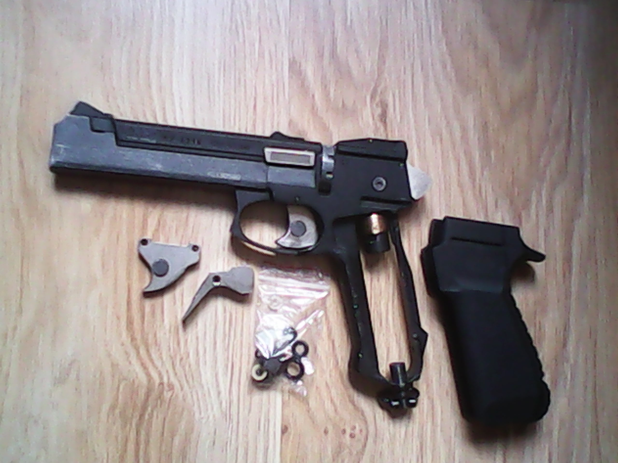 Пневмопест мр-651к.Из старых партий(корпус и барабан-клип металл).Установленна накопительная камера,стоит полиуретановая прокладка между стволом и барабаном.Под баллоны 8гр.Единственно- надо заменить прокладки в клапане(где-то подтравливает).Цена - 45 руб.