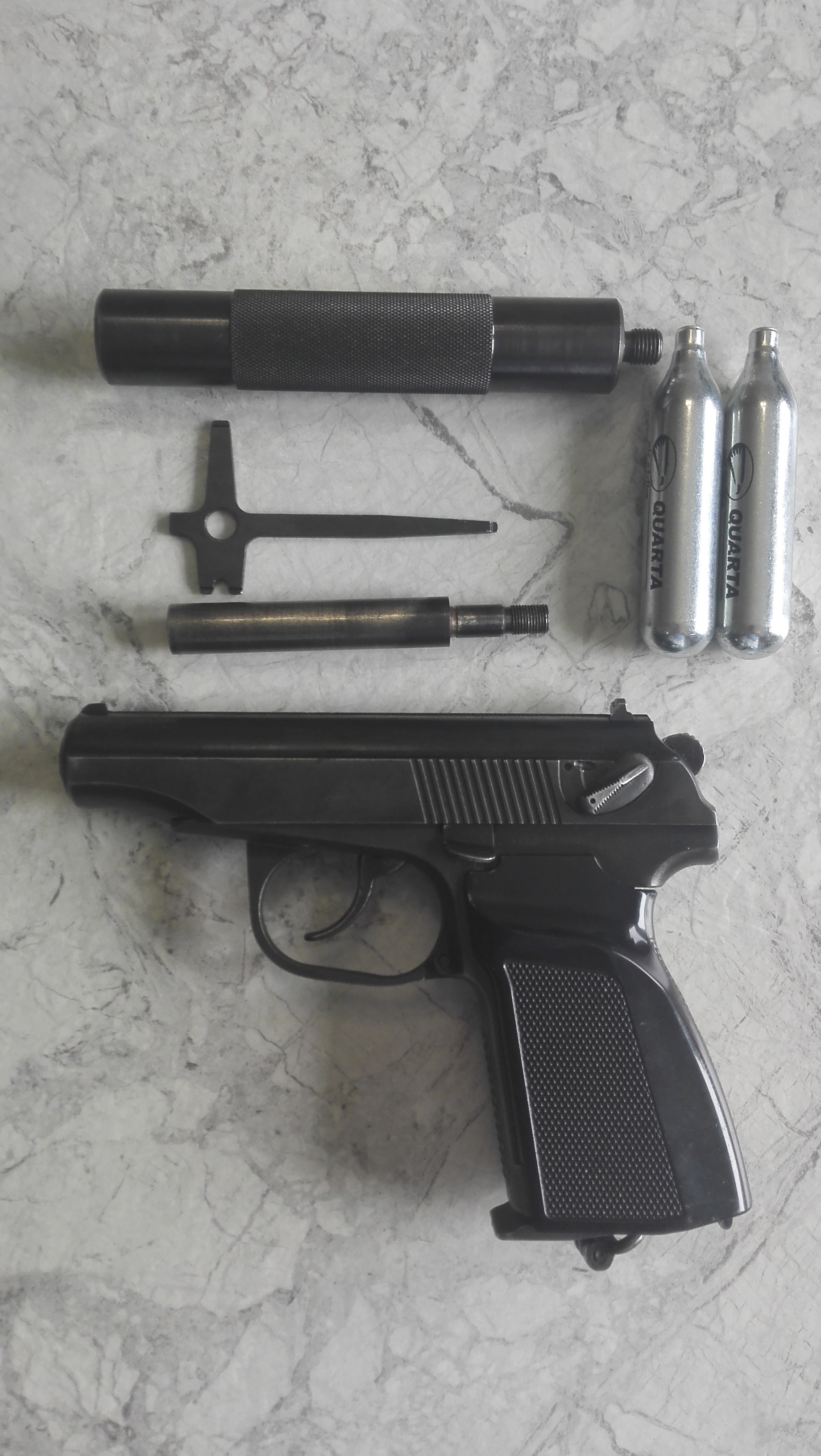 МР654-28. Установлен гладкий ствол от Петра с удлинителем. В комплекте: родной нарезной ствол, ключ, пара баллонов с СО2, ремкоплект. Цена 190 руб.