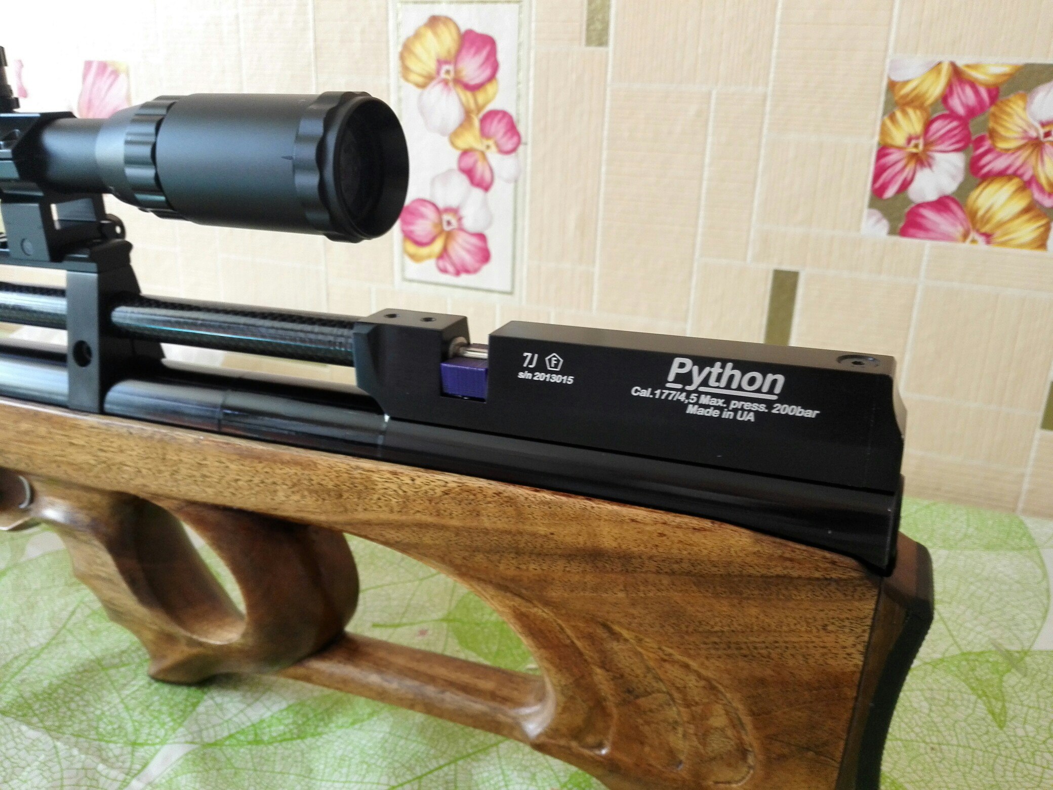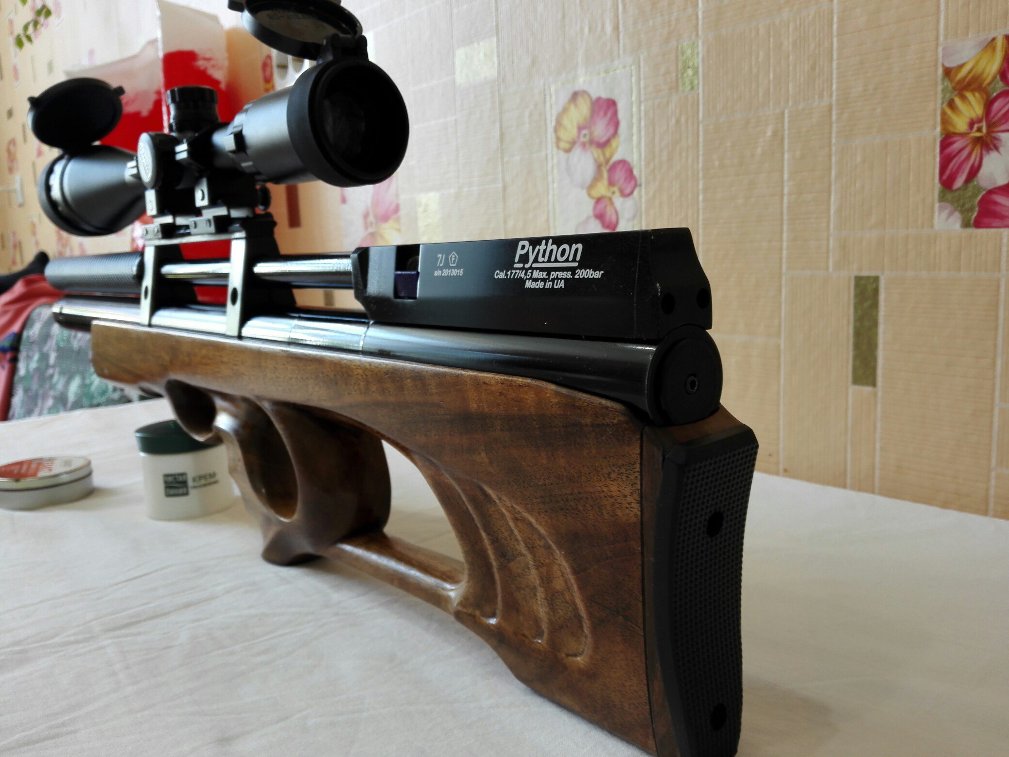 Продам пневматическую винтовку Python, калибр 4.5, дудка лв, редуктор, модер тока пук, с 250ти до 120ти примерно 70+шлепков!