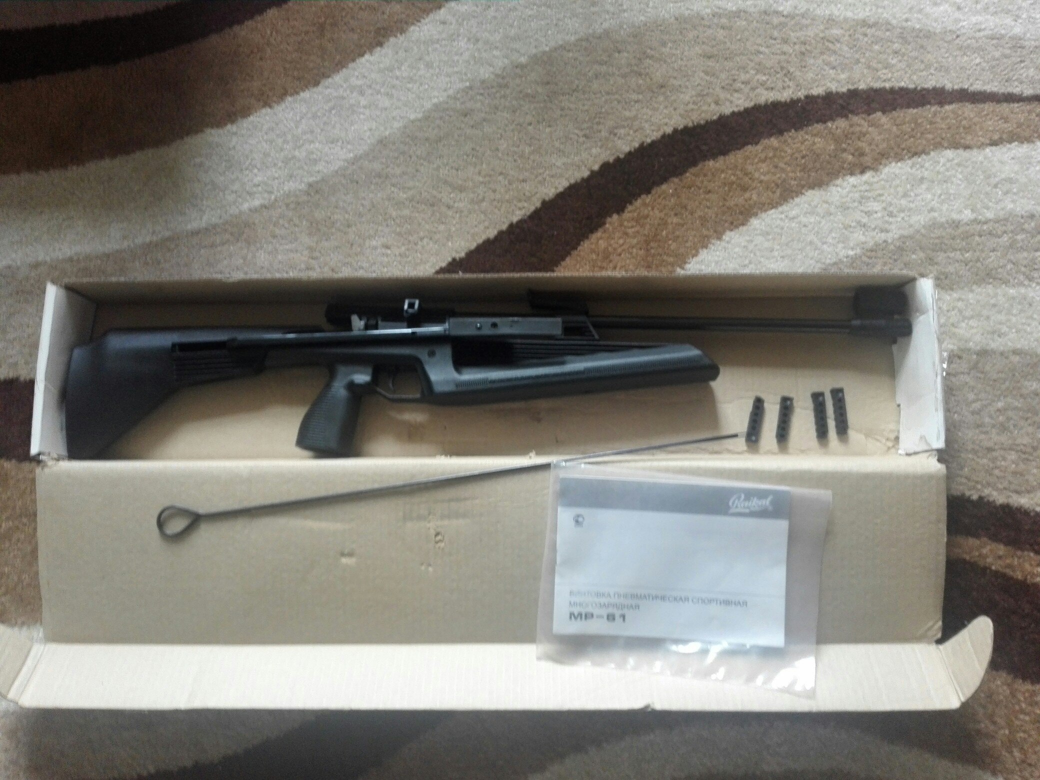 Коробка, документы, шомпал, 4 магазина.