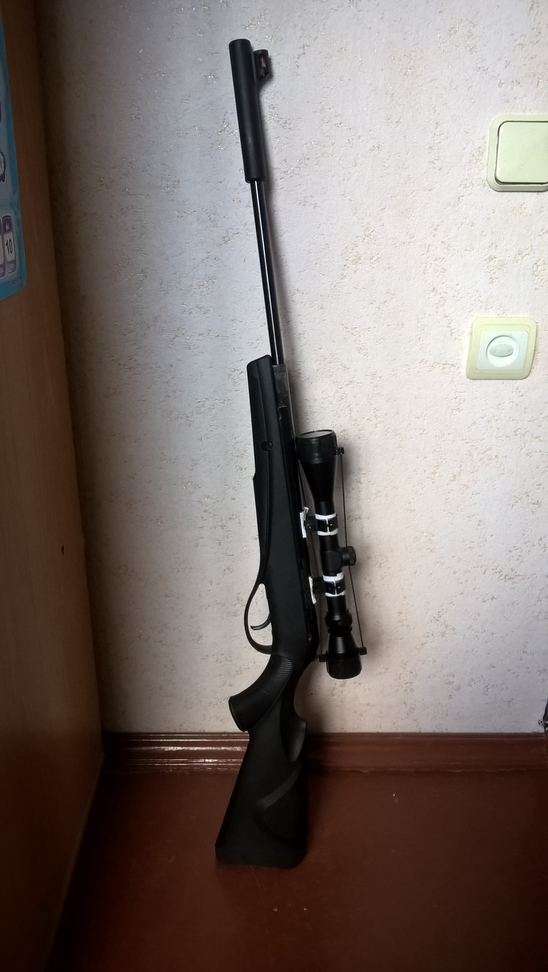 винтовка - калибр 4.5мм, преобреталась в магазине в Минске. прицел 3-9*40, тип сетки - "арбалетная" (бумажки на прицеле от смещения прицела и сохранения товарного вида после демонтажа прицела).