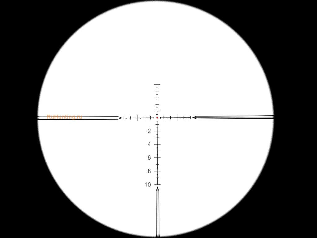 Сетка в первой фокальной плоскости, на любой кратности правильный милдот.