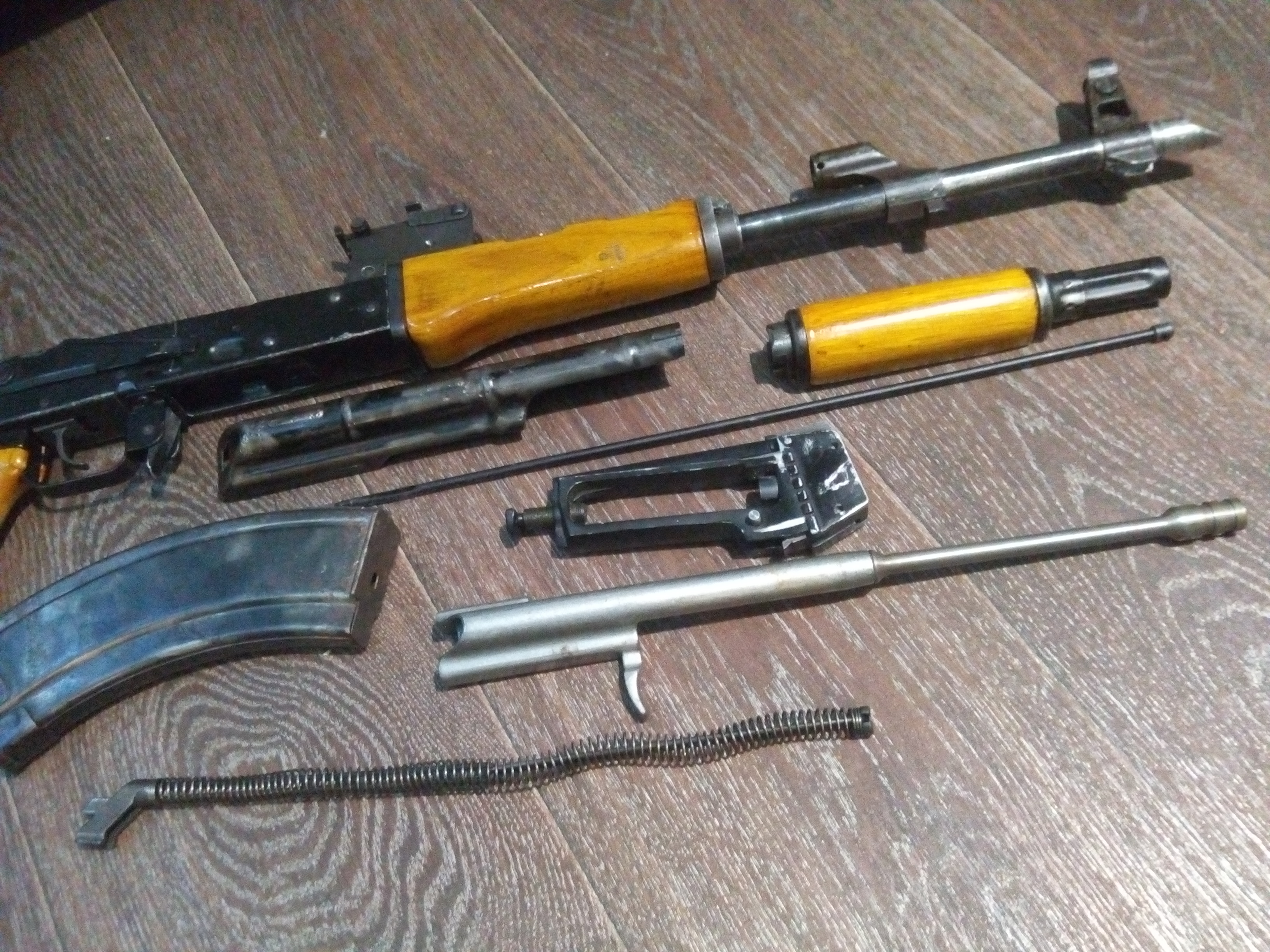 На фотографиях оригинальные запчасти: мушка, целик колодка мушки колодка целика, крышка ствольной коробки, изгиб газоотвода, трубка газоотвода, шомпол рожок. Имитация поршня и компенсатор выточен. Весь автомат выполнен из стали.