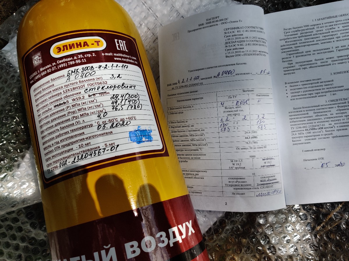 Продам баллон Элина 4литра новый 05.20г.выпуска, с итальянским вентилем и манометром от Вика,компактный ,легкий идеальный вариант как для переноски так и для хранения в авто. Балон на гарантии производителя 5лет,срок службы 10лет,следующая атестация 25г. Характеристики: вместимость 4,0 литра, длина с вентилем 535 мм; наружный диаметр 132 мм; вес 3,3 кг; рабочее давление 300бар .