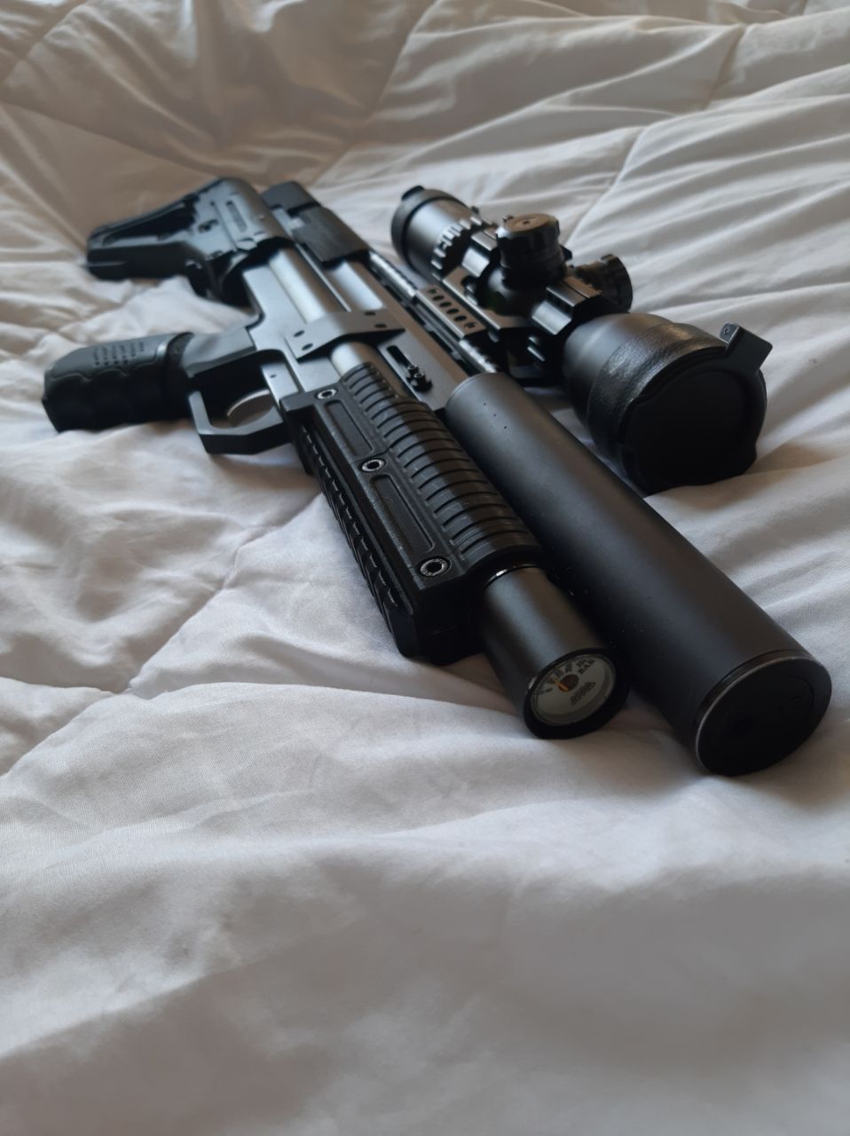 -ручка переноса на цевье от Glock с магазином в котором держатся три барабана.