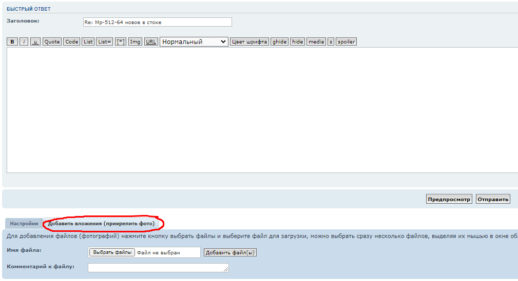 Внизу кнопочка есть. Если не получится, то могу помочь залить фотки.