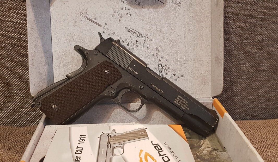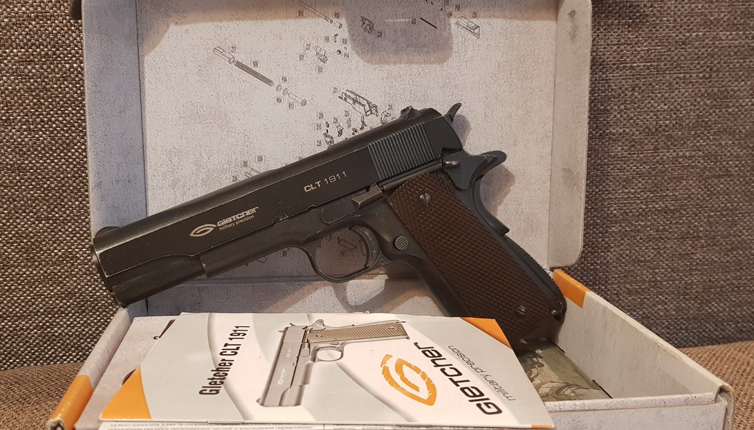 Кольт 1911, кал 4,5, заменены РТИ, магаз не травит, ББ работает, в комплекте коробка, доки, ключик. Цена 150 р.