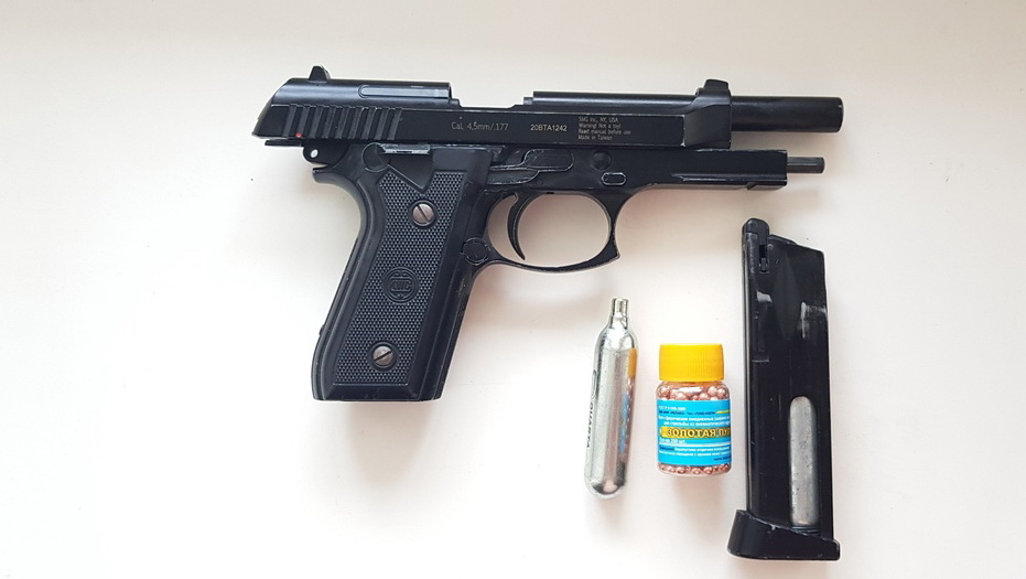 --Пневматический пистолет Gletcher SS P226 S5 с блоубэком, не плохое состояние, в комплекте доки, шарики, баллончик, цена 100 р.