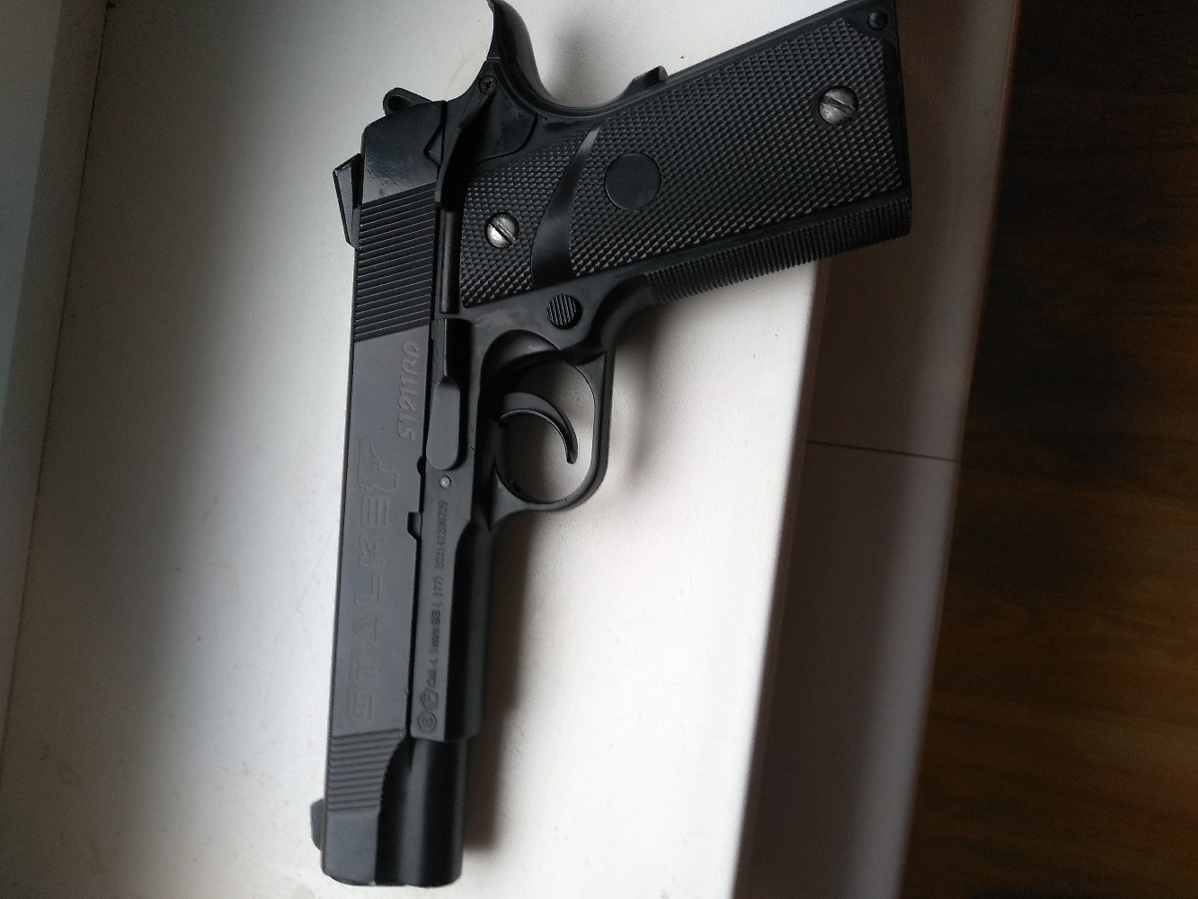 Продам пневматический пистолет stalker s1911rd.Состояние нормальное,затвор металл,рамка пластик, блоубек есть.Комплект - сам пистолет,коробки и бумажек нет.Цена 70 руб.Возможен обмен на другой пневматический пистолет (типа борнер с11 и подобное) Территориально возле Минска(Заславль).Тел +375295596721.