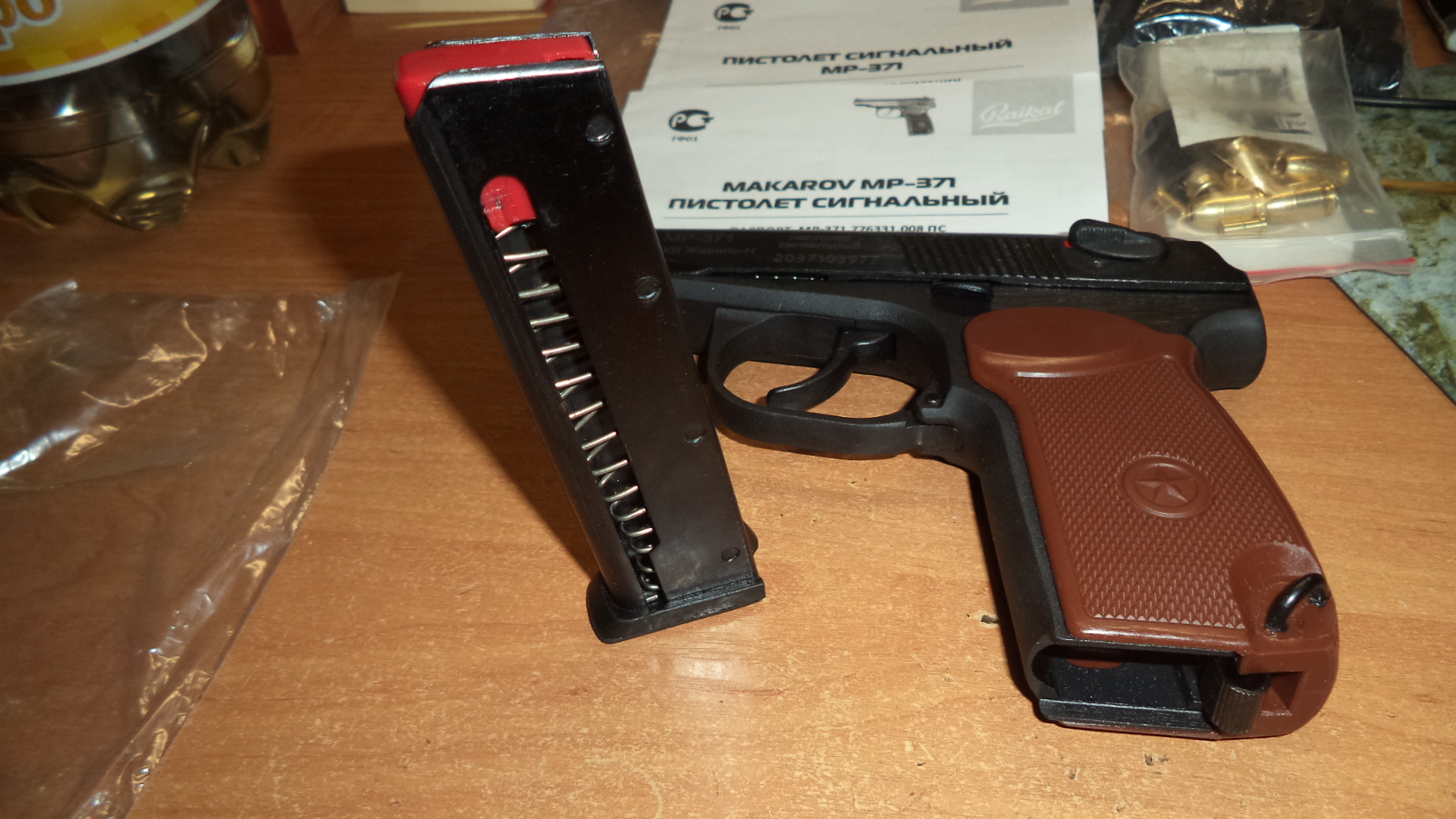 Стартовик новый, без настрела. ( пороха не нюхал совсем) В комплекте коробка ( нового образца) пистолет, инструкция, документы, катриджи пластиковые 30 шт ( 8 шт с капсюлями для проверки работы ) , картиджи бронзовые комплект с поршнями для работы автоматики. 300р. Сморгонь. 80336863322.