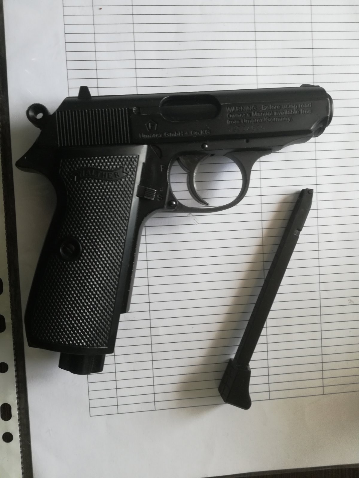 Walter ppk калибр 4.5, состояние отличное, все функции полностью рабочие, оригинал. Обойма в отличном состоянии. Настрел под сотню, не более чем. Отличный резкий бой, мягкий блоубэк и спуск. Цена 170р. Возможен обмен на насос для ПСП.
