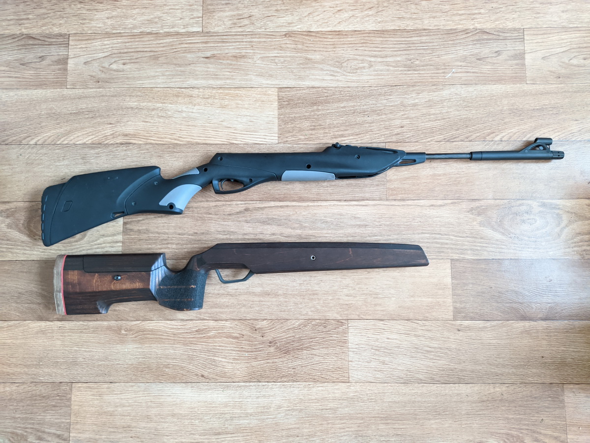 В стоке МР-512 "Кроссовок" сделана большая работа по железу, шоб не стыдно было: "лыжа"; угол зацепа тяга/поршень (мое ноухау); углы зацепа поршень/шептало; выровнена плоскость шептала в месте постановки СК на боевой взвод, спуск остался длинным, но ровным без срывов, прогнозируемый; плоскость дульного среза; выровнено дно компрессора, стенки не трогал; установлены винты вместо штифта на колодке целика, теперь прицел не болтается из стороны в сторону; пружина жесткая, выстрел сухой, резкий без дребезга и расколбаса...