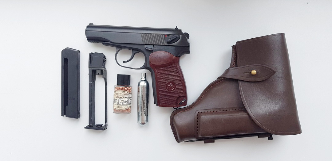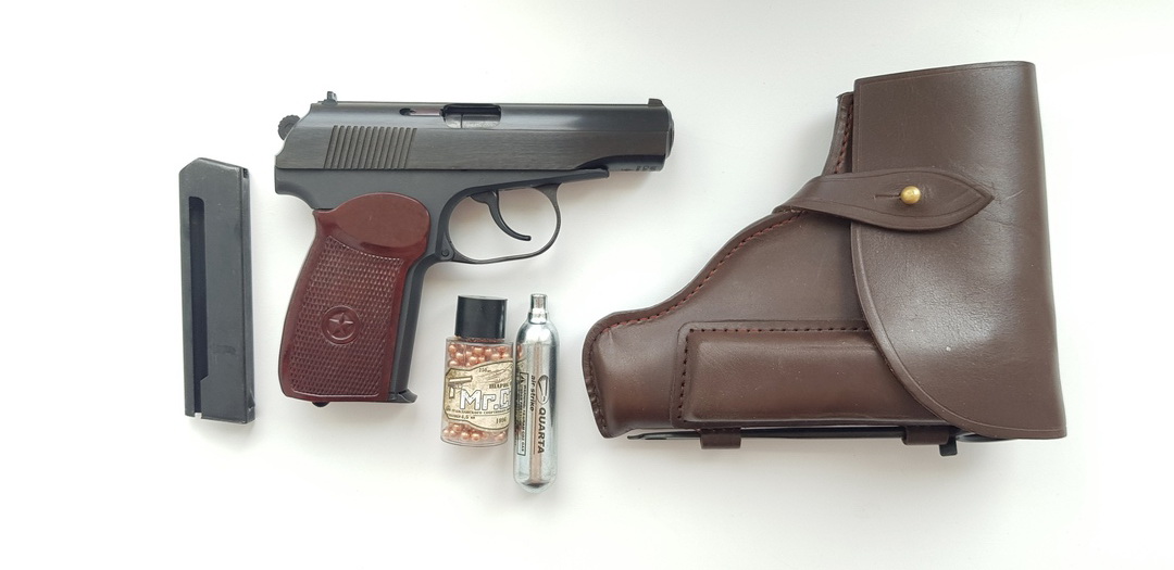Бюджетный мр 654 32 серии. Новодел. В комплекте кобура, шарики, баллончик и корпус от магазина, для перевода в интегрированный.