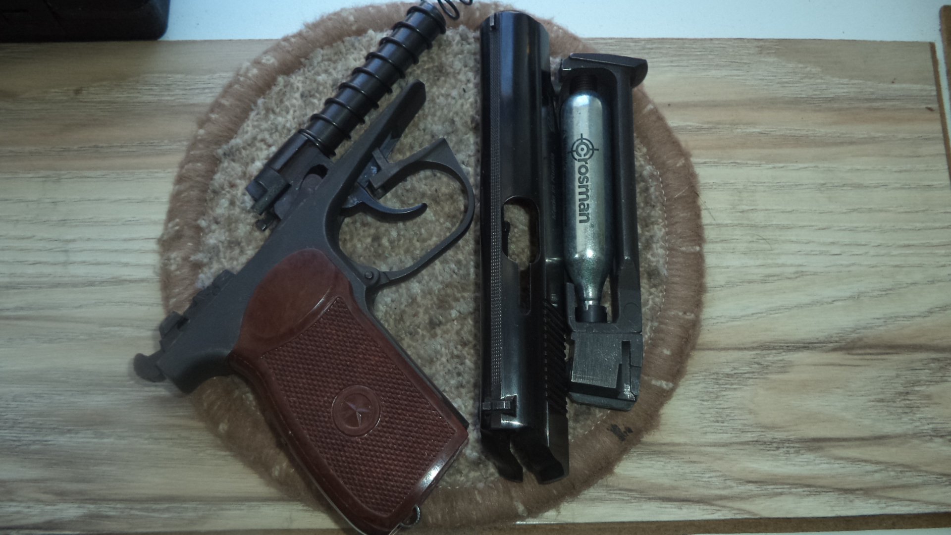 МР в отличном состоянии. Непонятно какой серии - рамка широкая , затвор с малой бородой и пазом под выбрасыватель как у 32й , год выпуска 09 . Люфты минимальные. В комплекте МР , баллон , шарики, ключ, документы, протирка, кейс. Цена на выбор , с черной рукояткой 380р, с бакелитовой 400р , с деревянной 400р. ВСЕ ВОПРОСЫ по номеру 80336863322. Почта.