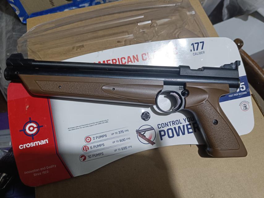 Crosman 1377 american classic brown с комплектом на фото: очки, мишени, пол банки пулек. Хранился всегда в теплом и сухом цоколе. Там же отстреляно пол банки. Ничего кроме стрельбы с пистолетом не делал, все родное и абсолютно рабочее.
