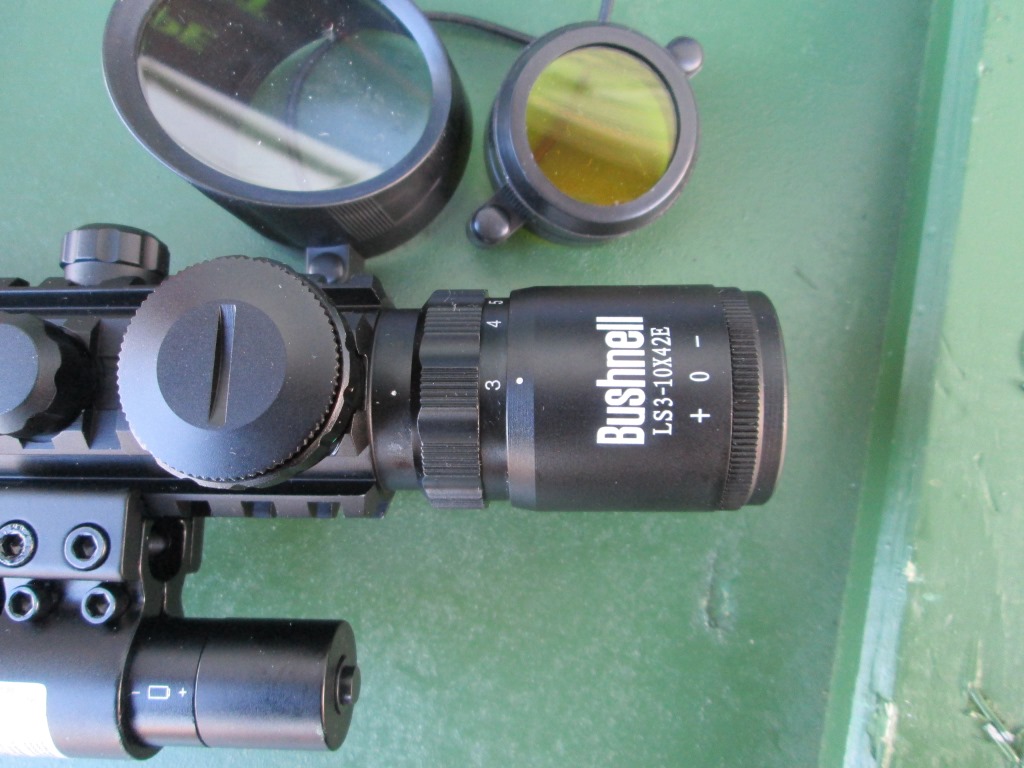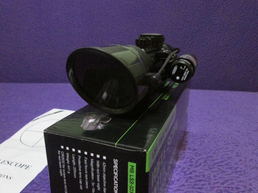 Новый прицел 3-10х42, с ЛЦУ, подсветкой и креплением. 150 рублей. Крепится универсально - на ласту 11мм и на Вивер 22мм. Сетка Милдот.