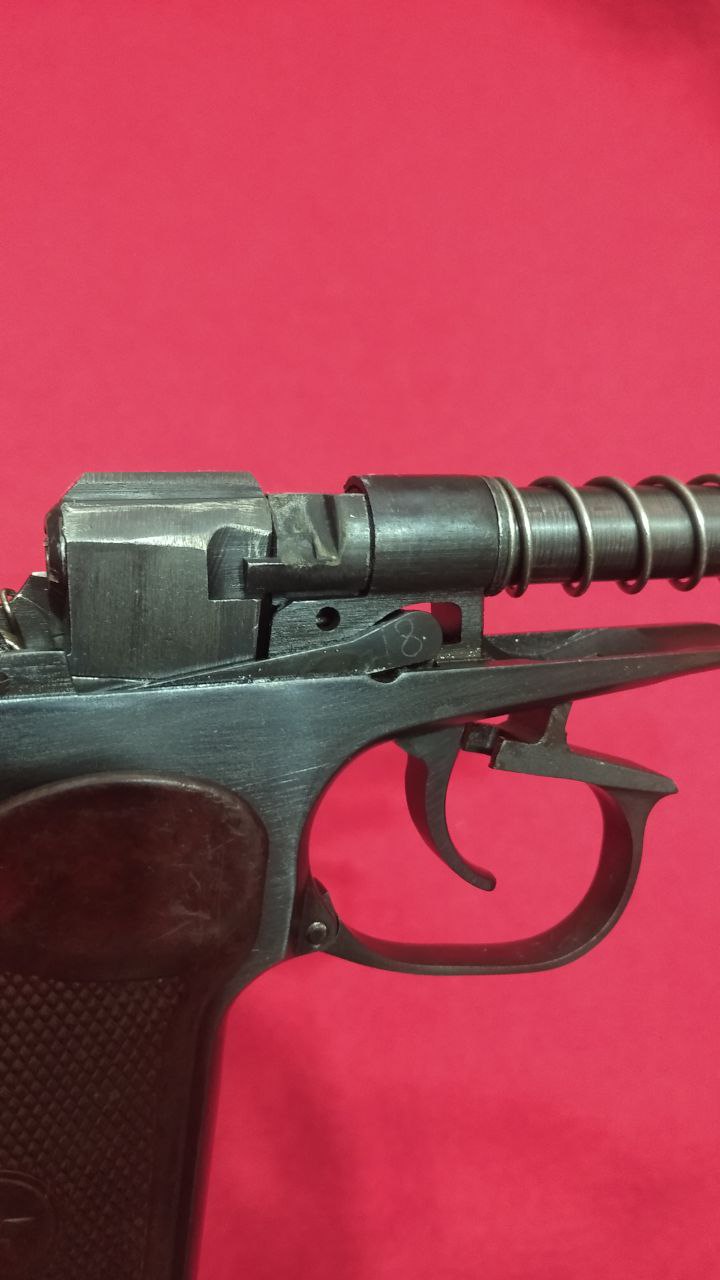 Продам мр654к 32н, исходник- боевой ПМ СССР. Переворонен, убран пескоструй. Установлены: фрезерованый крючек, фрезерованая номерная тяга, фрезерованое номерное шептало, фрезерованый красный курок, дутая задержка, имитатор выбрасывателя из настоящего, бакелит, гладкий стволик и удлинитель. Магазин интегрирован в настоящий магазин ПМ, в комплекте документы и коробка. Цена 750р, возможно удешевление: гладкий стволик и удлинитель в замен на стоковый -70р, бакелит в замен на чёрную рукоять -30р, -магазин -100р. Минск, 8025 9367514, возможен обмен на пневматику с доплатой или без.