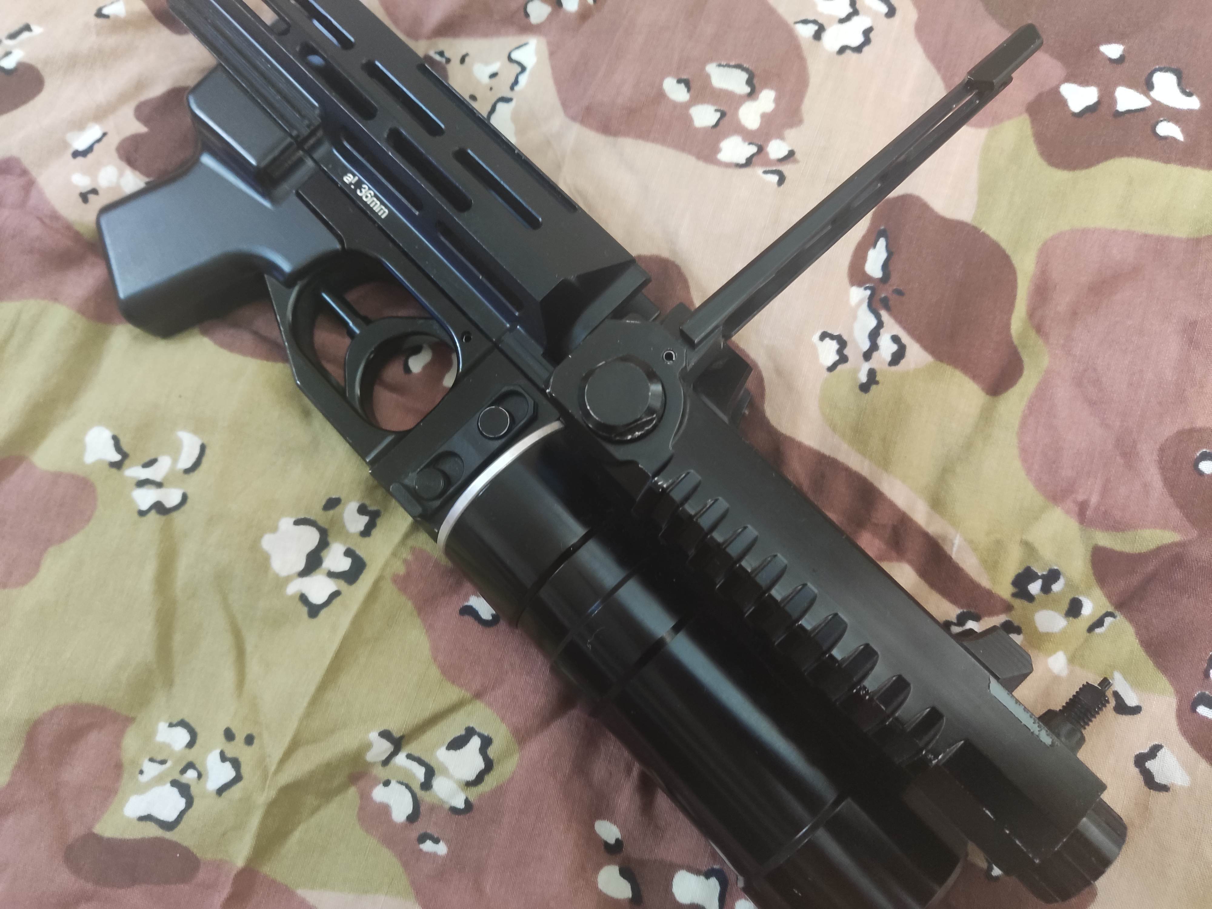 Гранатомет подствольный пневматический предназначен для установки на страйкбольные модели АК серий а так же на Юнкера и ММГ.В качестве выстрелов применяются капсулы,имитаторы подствольных выстрелов серии G1B.Вылет капсулы происходит за счет энергии со2 баллончика.12ти граммового баллона хватает на 8-10 выстрелов. В играх не участвовал,настрел 5 баллонов,в комплекте ЗИП, Выстрелы можно приобрести на Strike.by /цена 650р.торга нет Cсылка скрыта. Для просмотра необходима регистрация на форуме или войдите на форум.