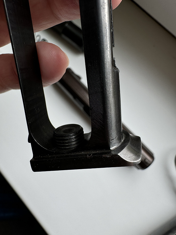 6. Подварены упоры «рога» на рамке, что позволяет сбрасывать затвор с З/З без вреда
