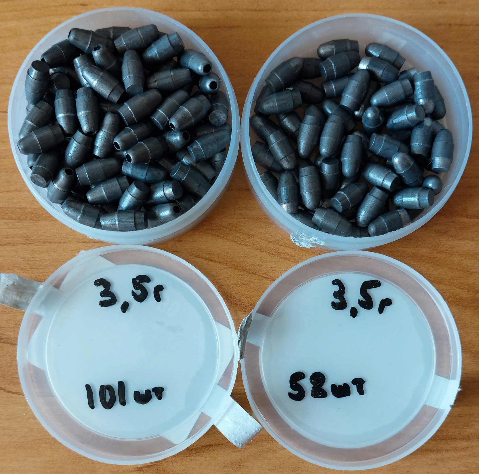 Пули 6,35мм 3,5г, фактический размер 6,38мм - всё что на фото.