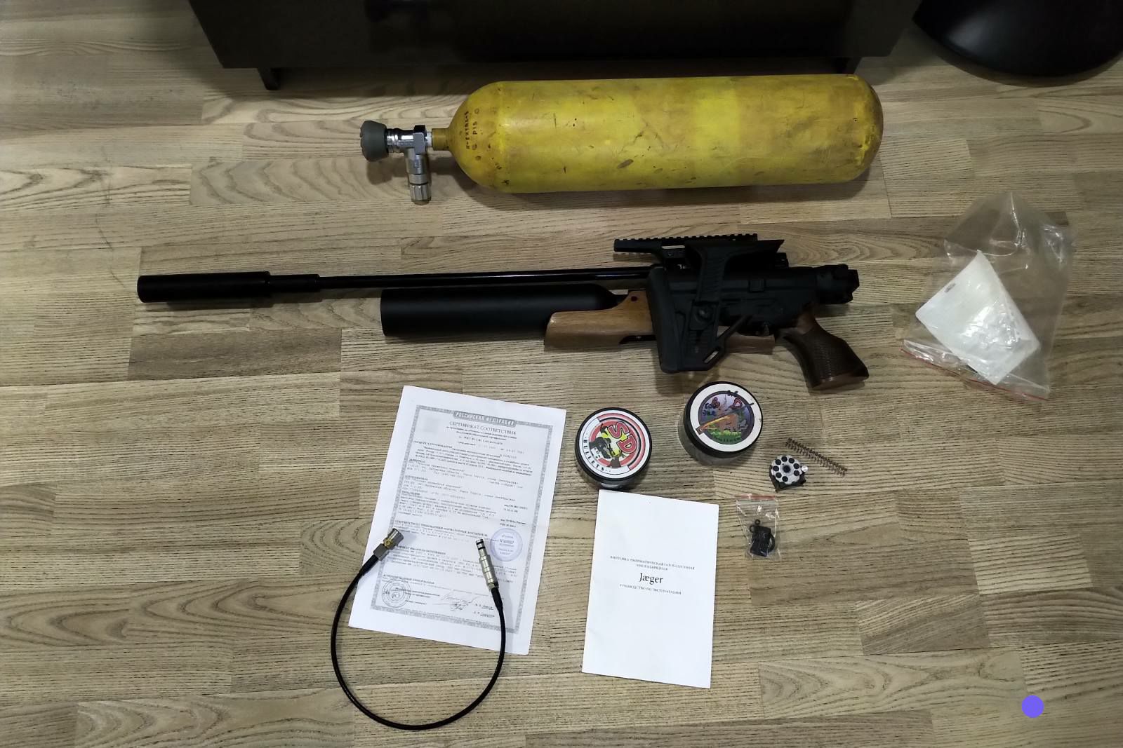 В продаже егерь 6,35, ствол 550 lw, прямоток, складной карабин с колбой. Покупался в россии. Там же настраивался. Собственно настрел с тех времен штук 200. Никуда больше не лазили и ничего не крутили.В комплекте планка наклонная, баллон, бумажки и штук 800 огурцов 0,38 грамма, которые покупались вместе с ним. Все естественно в пределах 3 дж. Сертификат имеется.цена за все 4500. Возможен обмен на лешего2