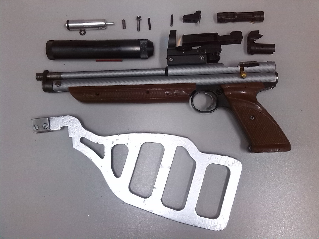 Продам Кросман 1377 МК-4,5. Покупал здесь. Пластик заменён на металл прошлым владельцем. Приклад Д16Т лист 8 мм. добавил от себя. Не понравился. Может кому-нибудь нужней??? Комплектация как на фото. Есть ещё заготовка под приклад(без крепления) как на фото(только заусенцы нужно убрать) , могу подарить, если кому-нибудь нужно(без продажи пистолета). Цена - 150$ или по курсу. С почтой и маршрутками дружим. Пересыл и проценты за перевод денег на покупателе.