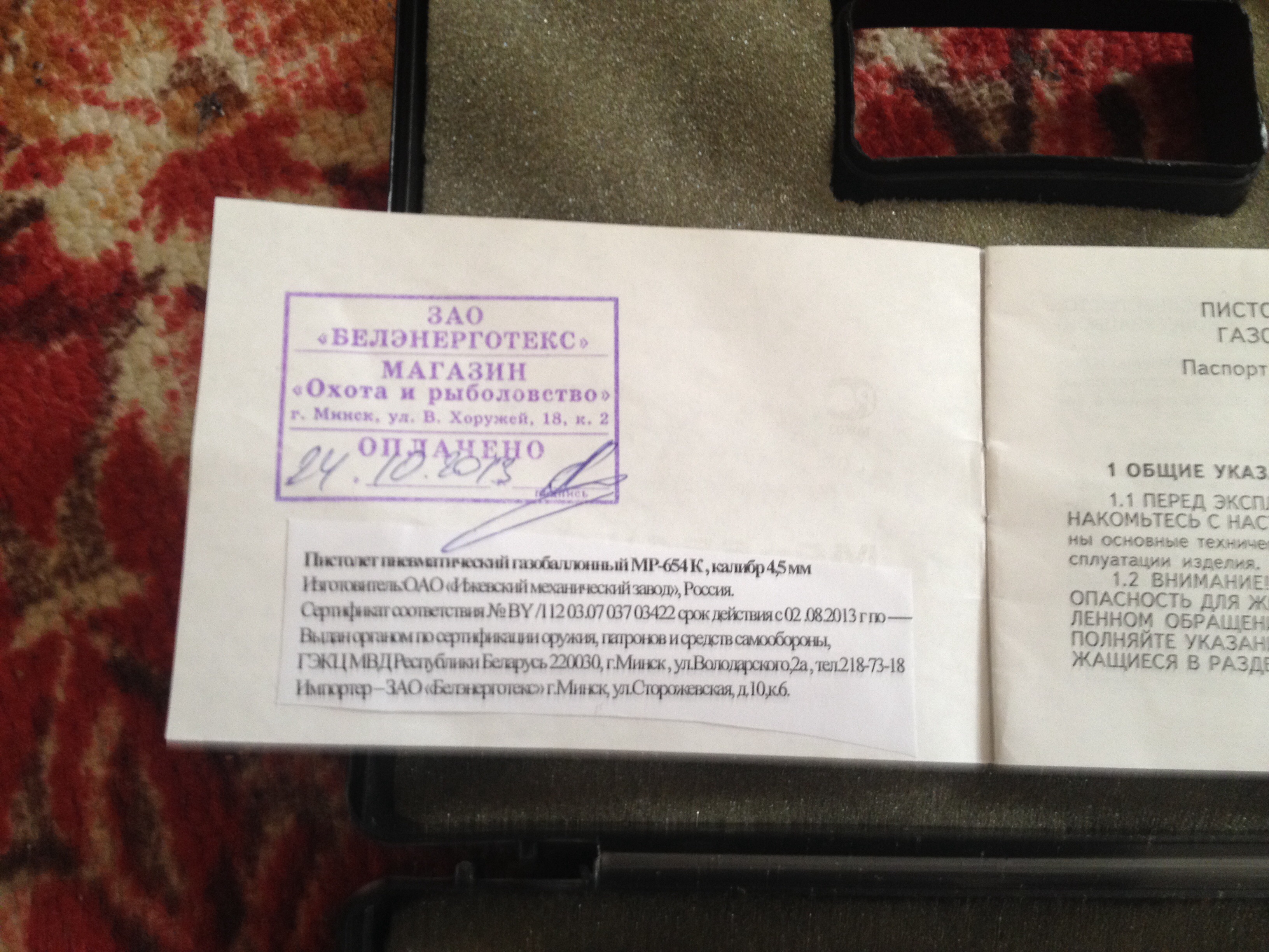 vla писал(а):Продам МР 654К. Все заводское. В комплекте кейс, документы, пистолет. Цена 200 р