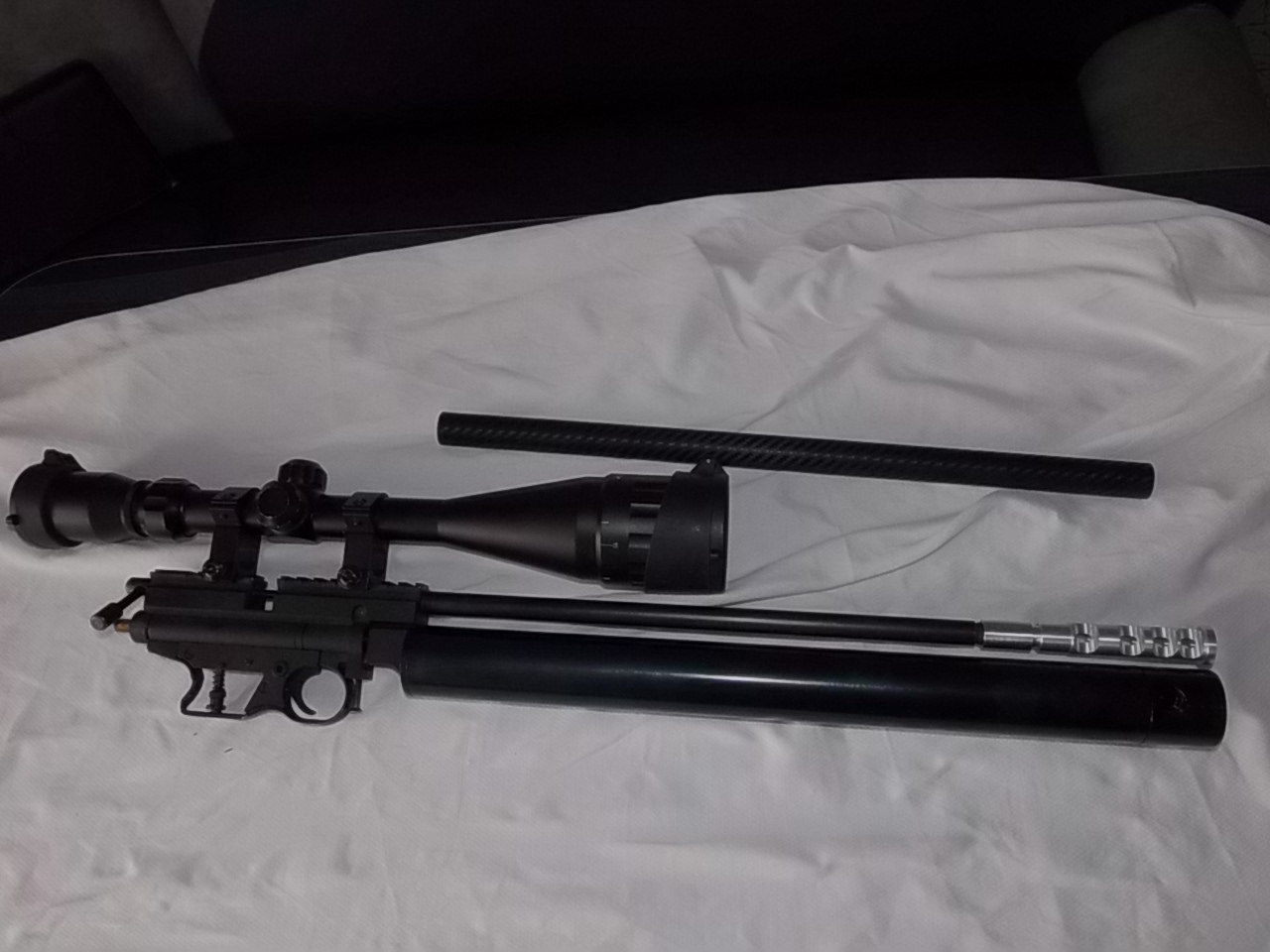 Итак комплект: собранное воедино изделие,заправочные штуцеры,барабанчик Крюгера 10-ти зарядный,ЗИП,прицел оптический(это по желанию).