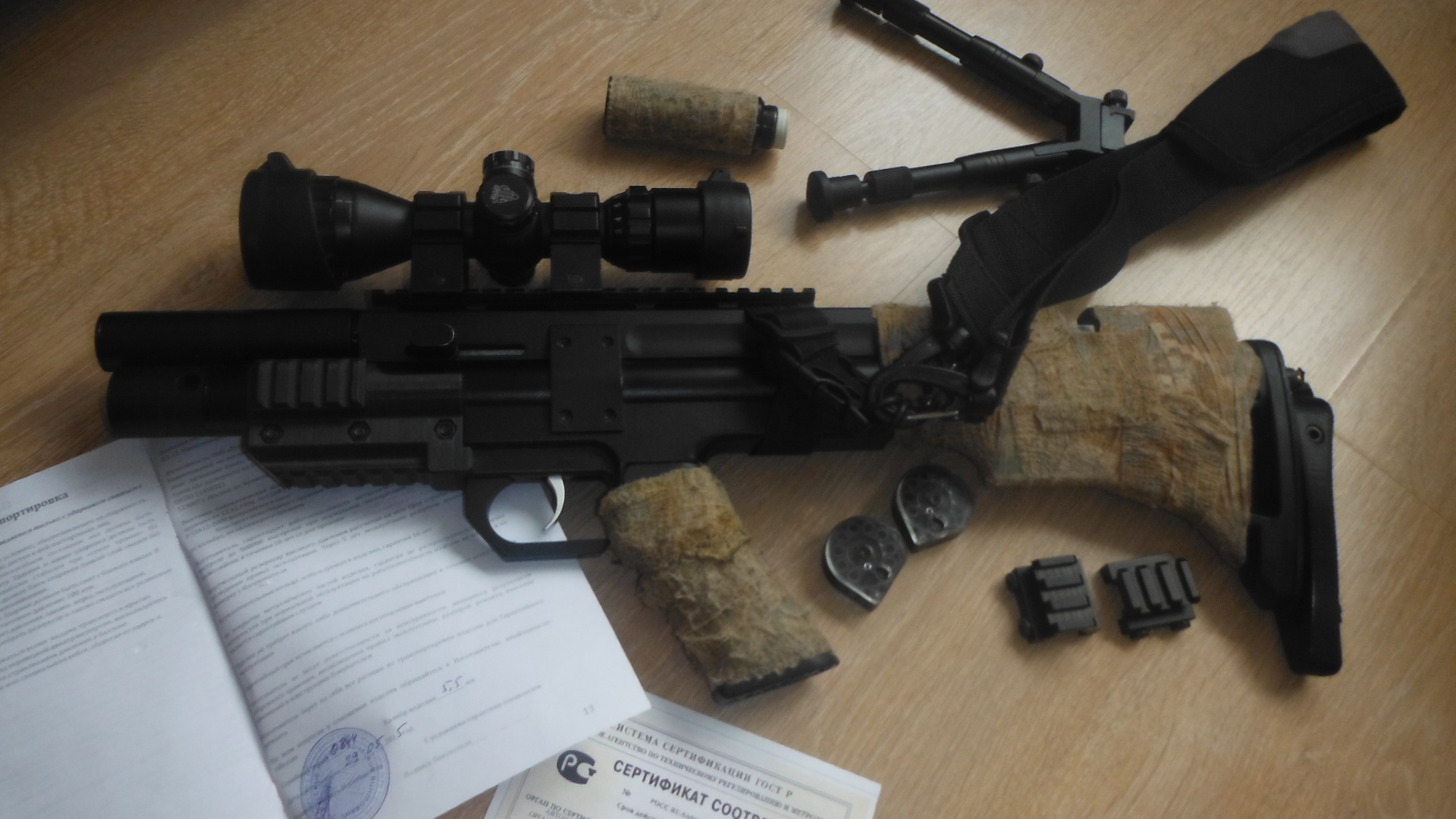 настроена д40мысов жзб 1.175 4 барабана.Из допов прилагаю.Прицел липа миник 3 на9 ,затыльник регулируемый,цевье с вивер отДимитса,антибздун,сошки,ремень,повышайки для прицела под вивер,доп модер от биктрека.