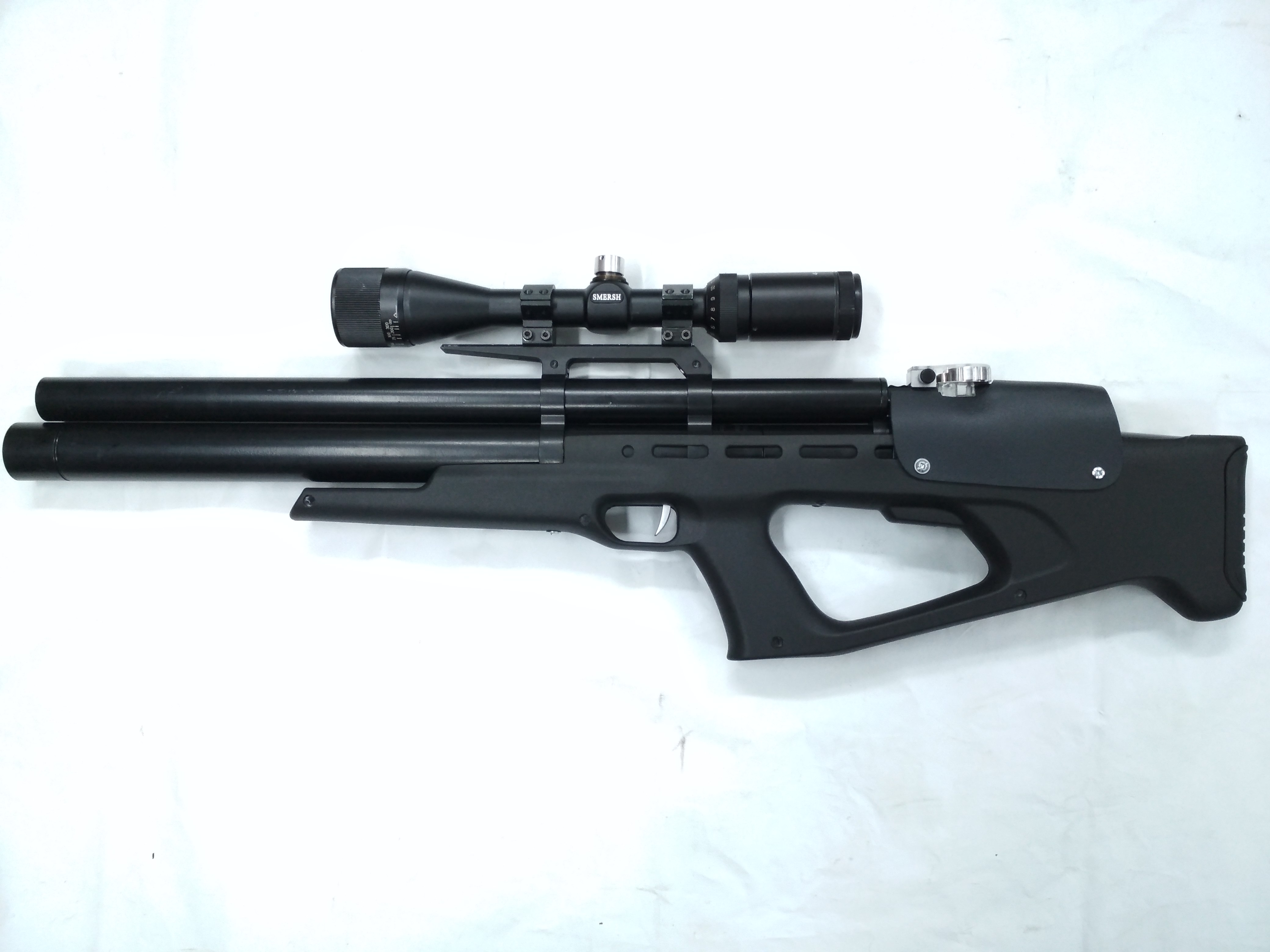 По ТТХ. Редуктор работает до 120 , далее в прямотоке можно лупить до 90 атмосфер. Сколько выстрелов незнаю вечно сбивался со счёта. Снаряд весом 1.175 легко гонится все проходные включая клапан расточены. Стволик неплохо себя показал на скорости **60 . Жаль что коротковат.Всё это художество будет неспешно продаваться за 900р. Без прицела и колец. В придачу ничего пока нету.