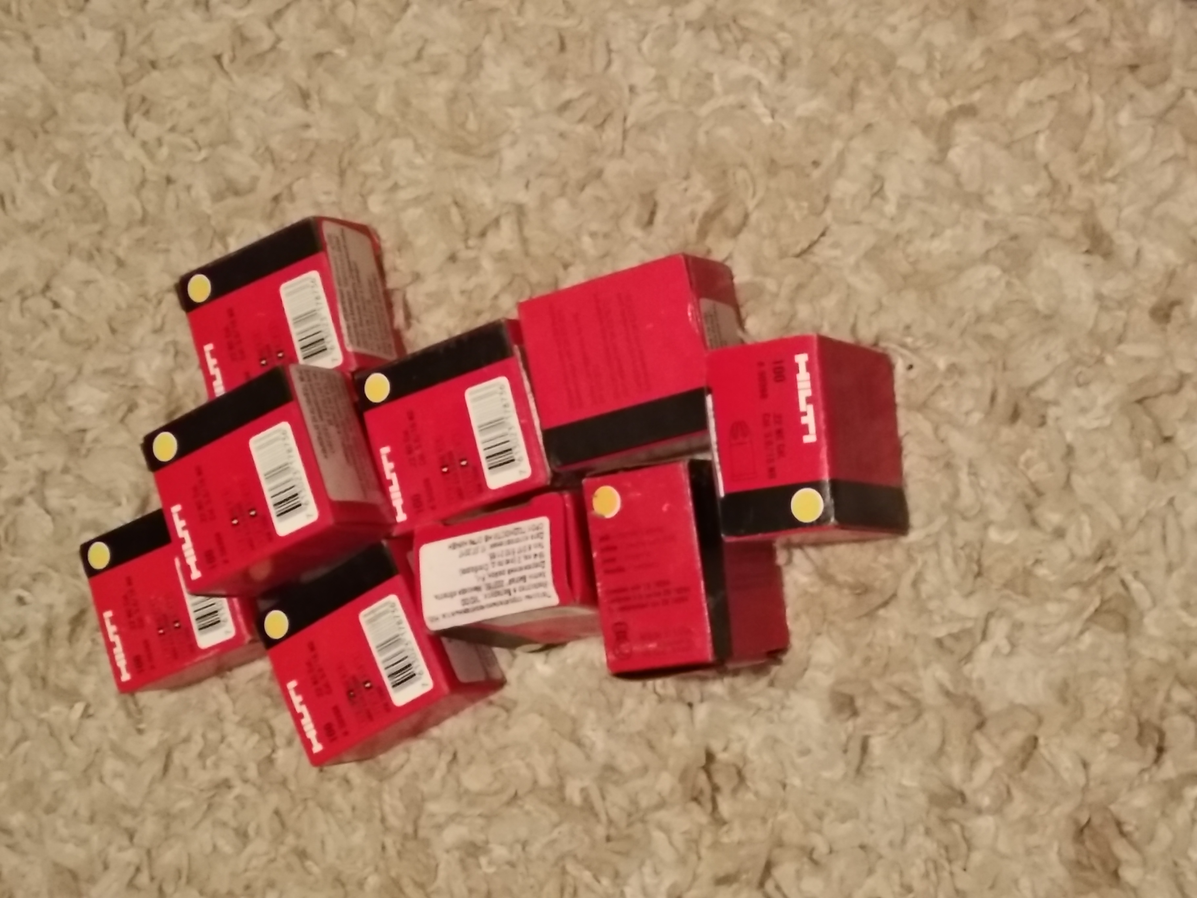 Хилти жёлтые, в наличии. калибр 5,6*16мм, в пачке 100 штук. Цена 12р за одну пачку. Две и более по 11.50р. Почта работает. телефон +375295090572 Других цветов пока нет, но возможно появятся.