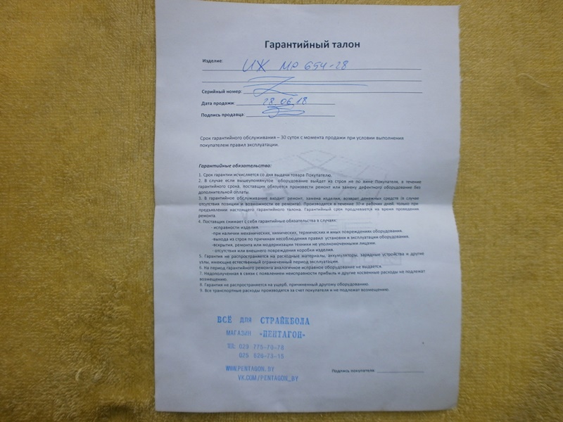 Продается мр654-28,практически новый,настрел-1баллон,установлена деревянная рукоять(орех),родная пластиковая в комплекте.Цена 210 р.