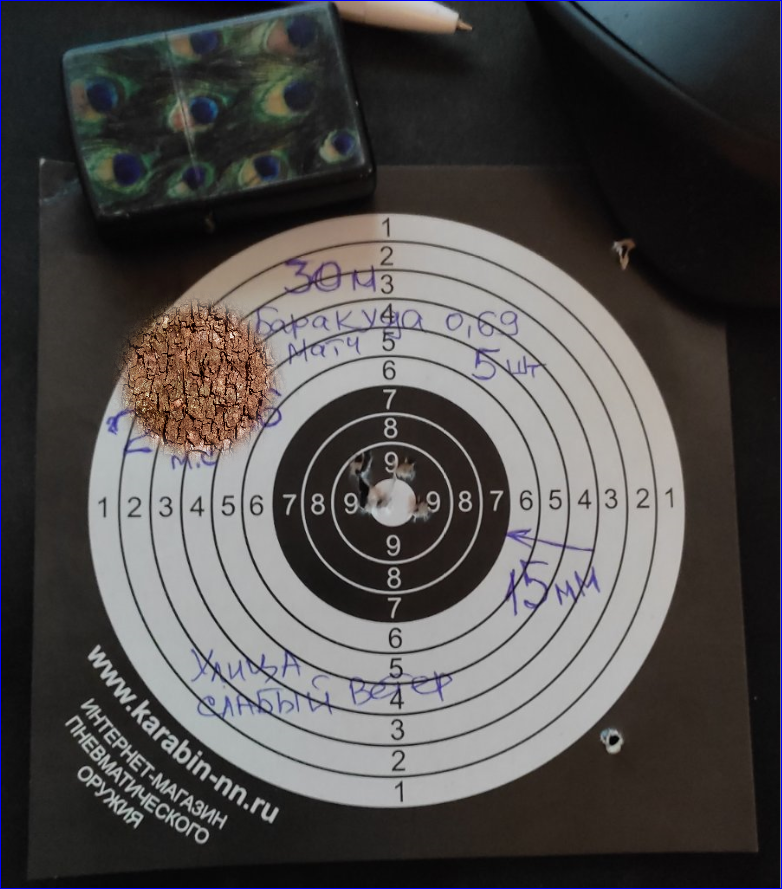 Чето я вчера обольстился звёзды сошлись в 15 мм. Сегодня пострелял не раз. Вот его реальная куча барракудой 0.69 на фото.